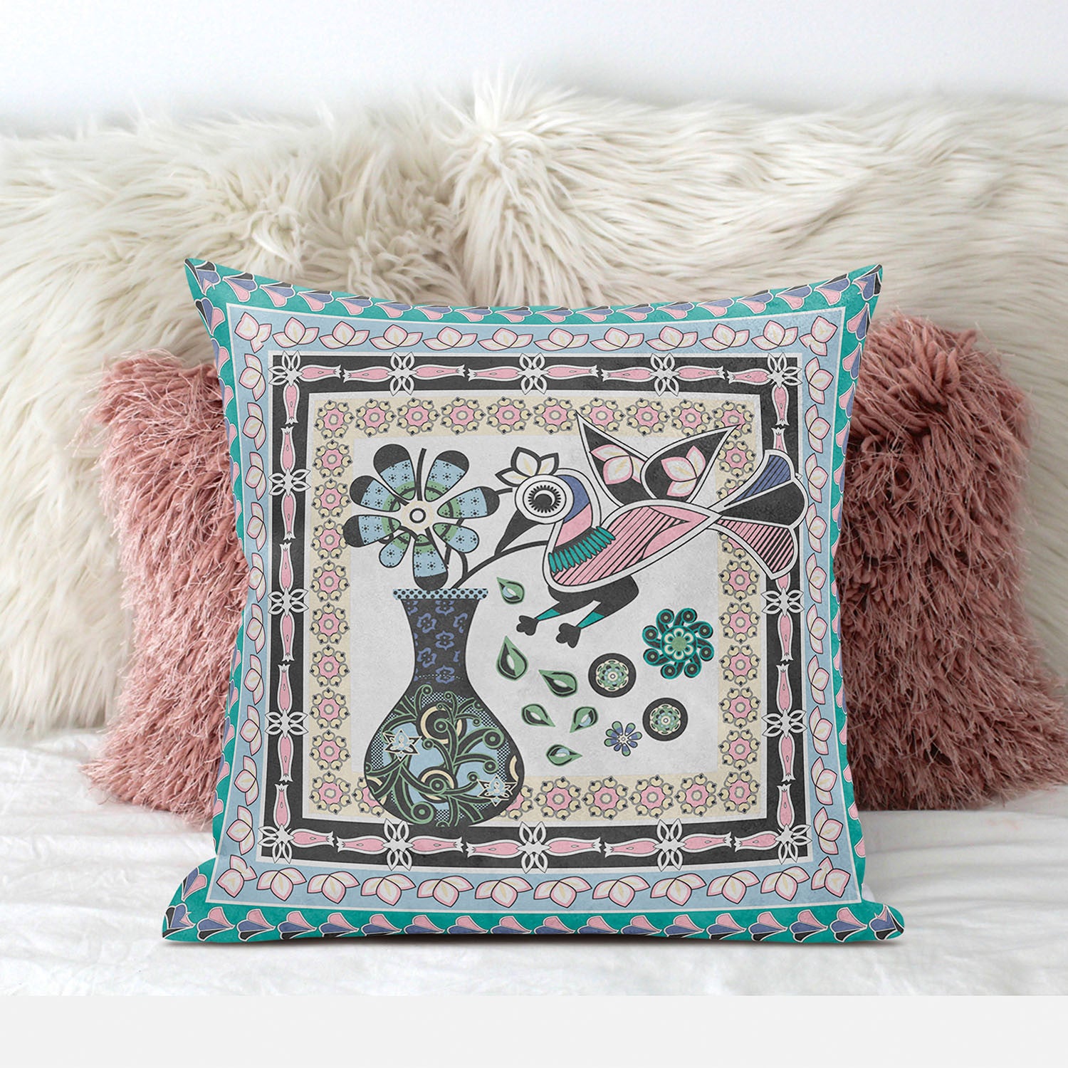 18" X 18" Black and Gray Peacock Broadcloth Floral Zippered Pillow