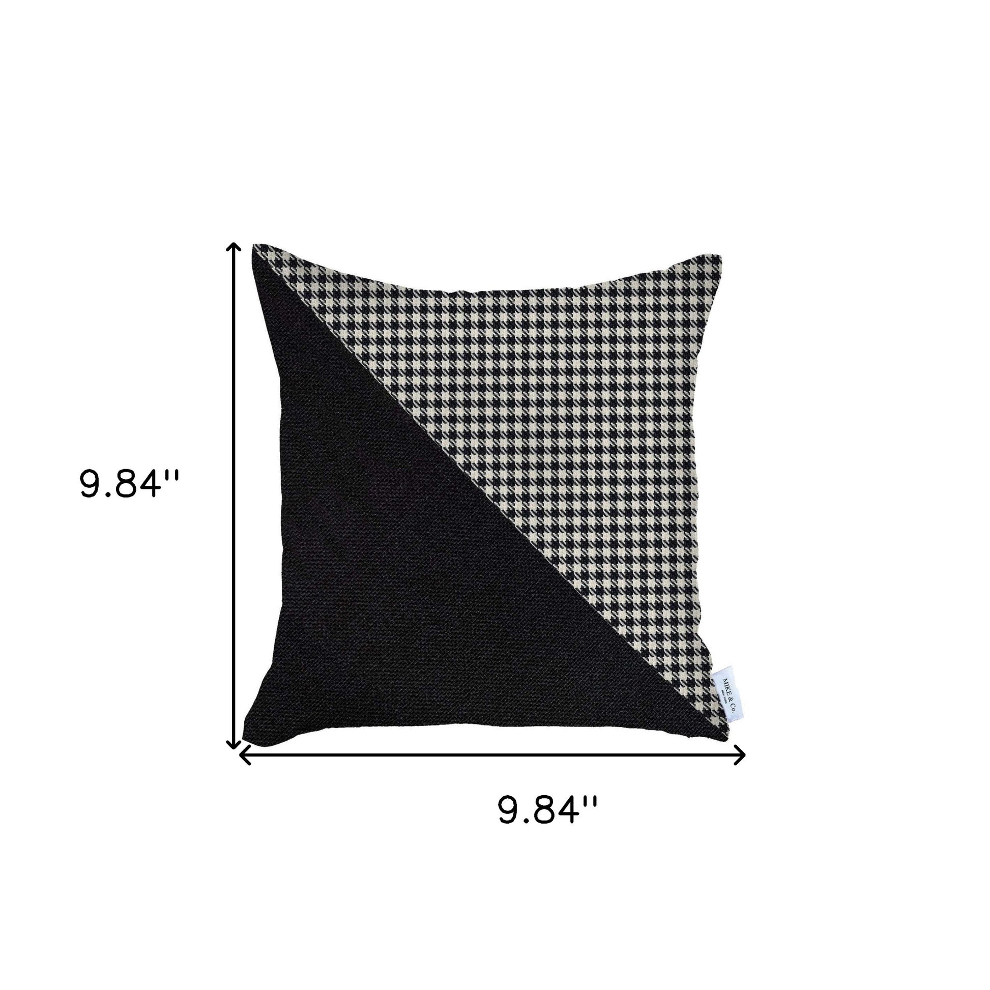 18" X 18" Black And White Houndstooth Zippered Handmade Polyester Throw Pillow Cover