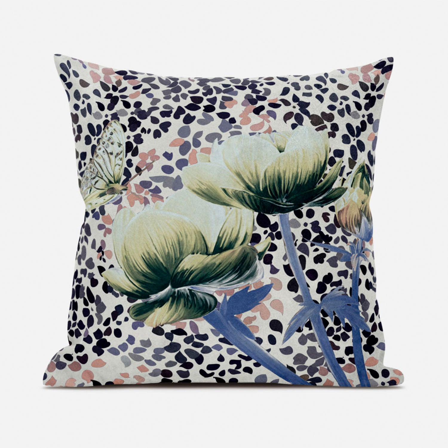 18" X 18" Blue and Black Butterfly Broadcloth Floral Zippered Pillow