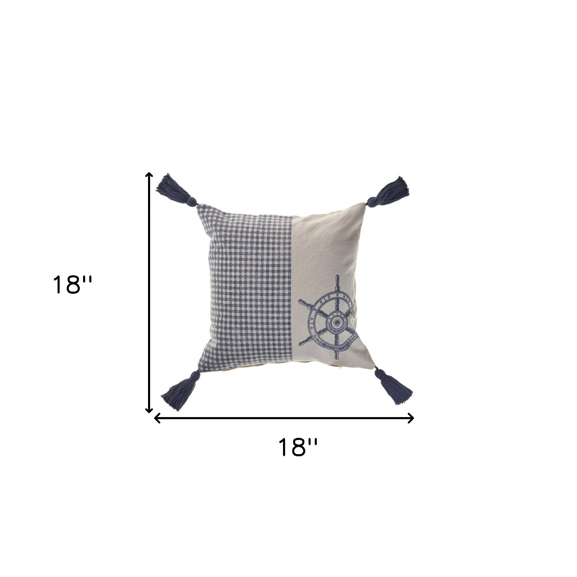 18" X 18" Blue And Cream 100% Cotton Coastal Zippered Pillow