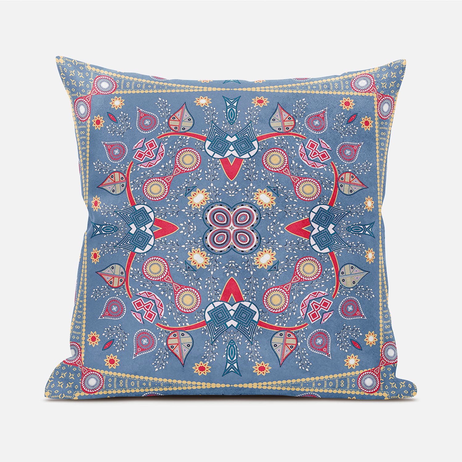 18" X 18" Blue and Gold Broadcloth Paisley Zippered Pillow