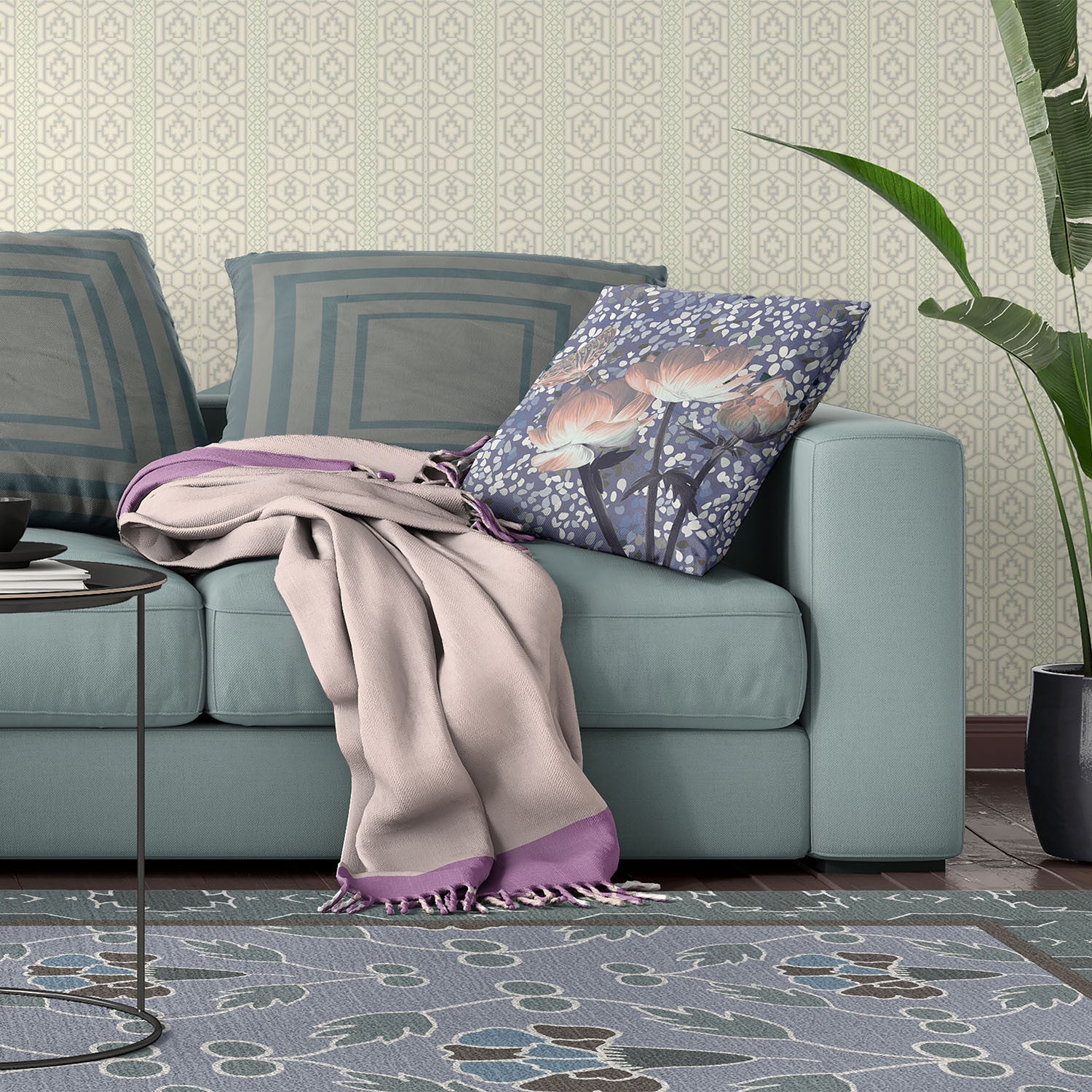 Unique and decorative, this comfortable 18" x 18" blue and gray butterfly broadcloth floral zippered pillow will leave a lasting impression. This soft and durable decorative pillow is expertly made of high grade, long lasting broadcloth in a blue and gray coloration. For anyone that loves to decorate or accent their space with color and texture. A great decorative accessory for your favorite chair, to accent your sofa, or to use as part of your bed ensemble. 5" H x 18" W x 18" D