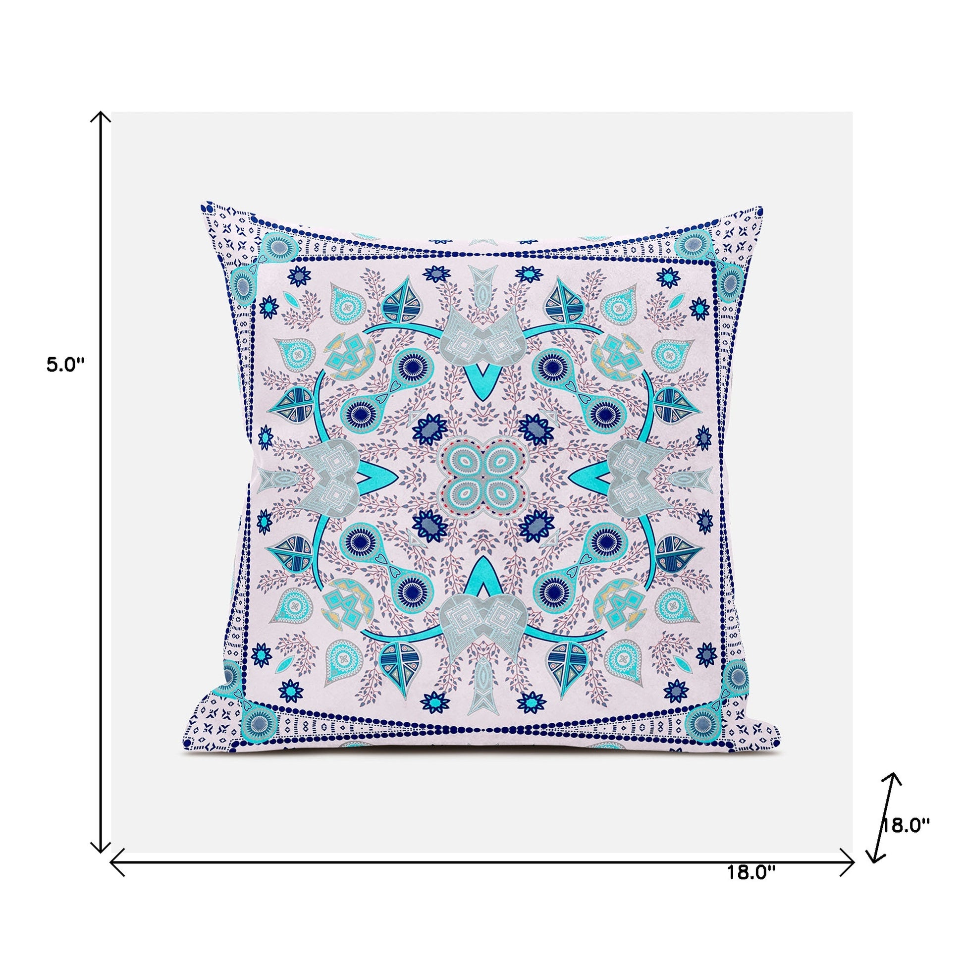 18" X 18" Blue and Pink Broadcloth Paisley Zippered Pillow