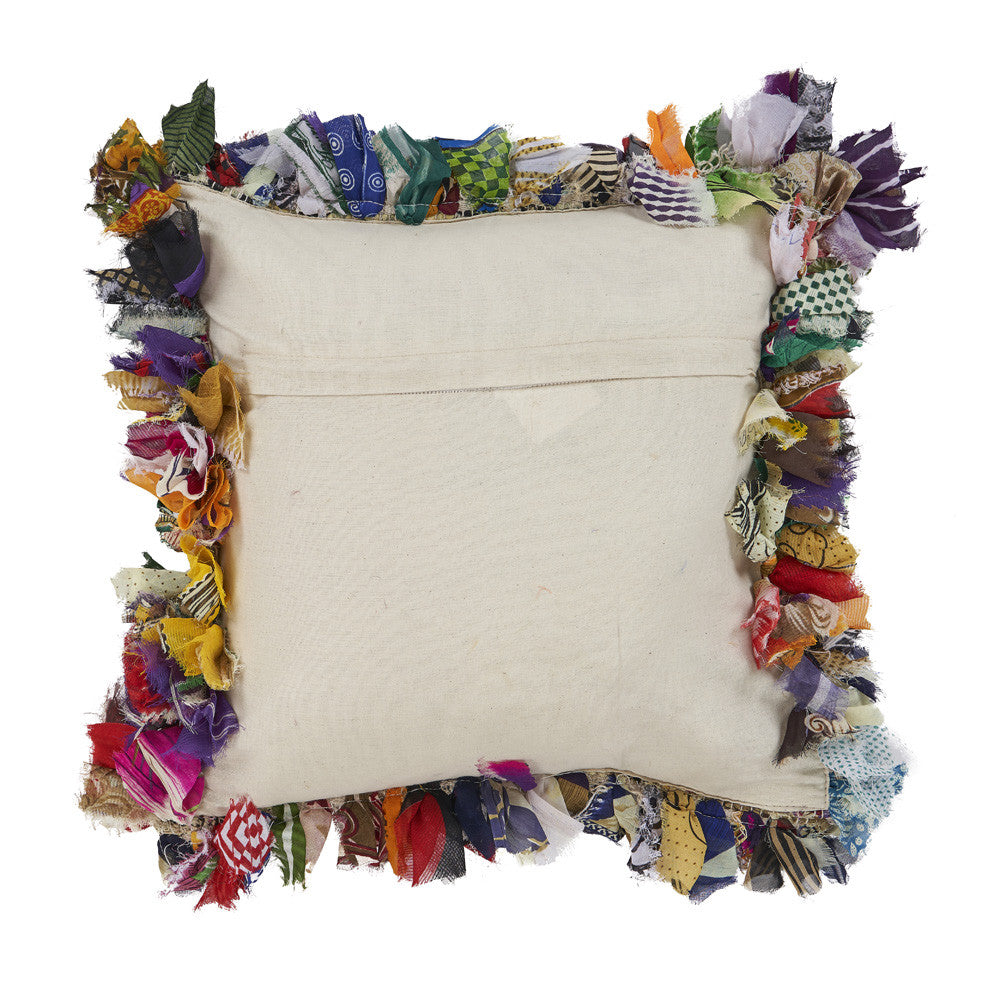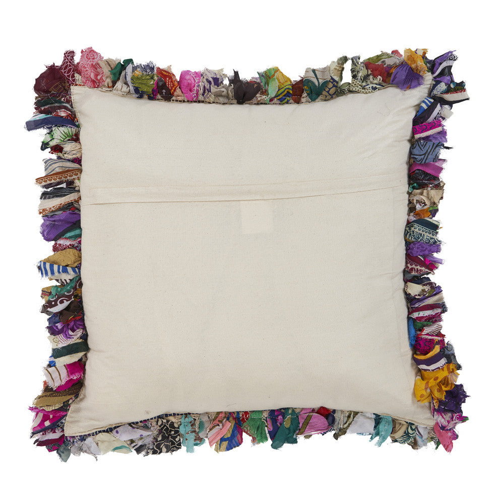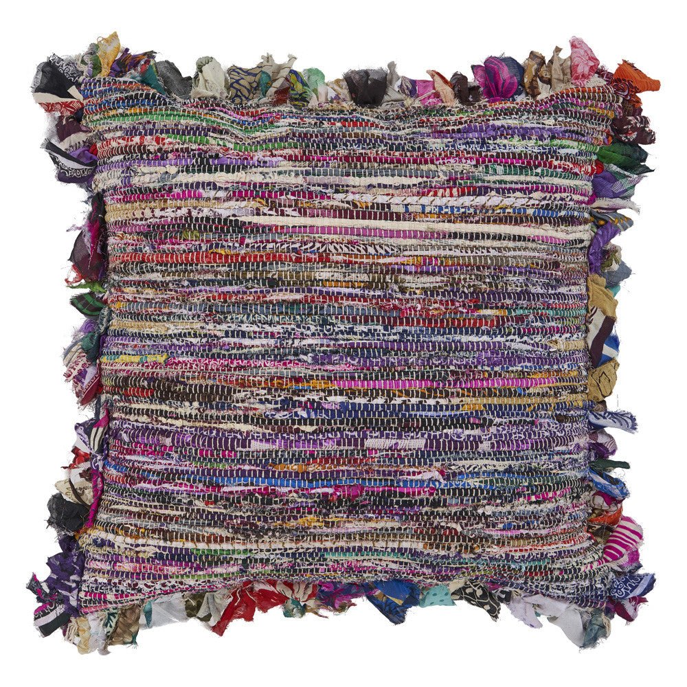 The perfect complement to your sofa, favorite chair, or bed, this 18-inch x 18-inch blue and red weave zippered pillow with fringe is a great decorative accent. Fun and decorative fringe add some high end and hand-crafted textural designer touches. Super soft and built to hold its shape, this polyfill pillow is a great option. Great to use on its own or mix with other decorations for the perfect look. A great decorative accessory for your favorite chair, to accent your sofa, or to use as part of your bed ensemble. 18-inch H x 18-inch W x 6-inch D