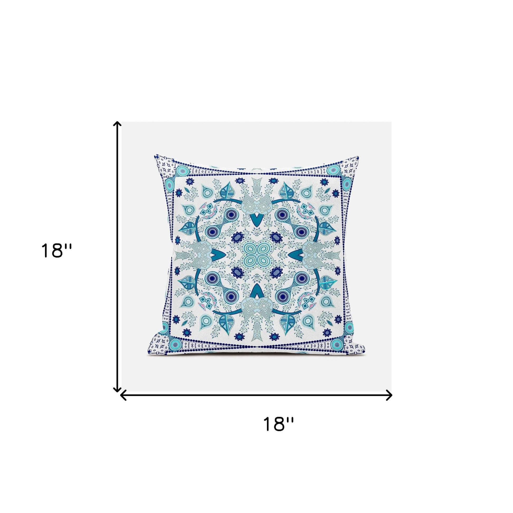 The perfect complement to your sofa, favorite chair, or bed, this 18" x 18" blue and white broadcloth paisley zippered pillow is a great decorative accent. The blue and white coloring of the extremely durable and long lasting broadcloth will add dimension and texture to your space. Great to use on its own or mix with other decorations for the perfect look. Decorative pillows are a great way to change up the look and feel of your space easily and quickly. 5" H x 18" W x 18" D