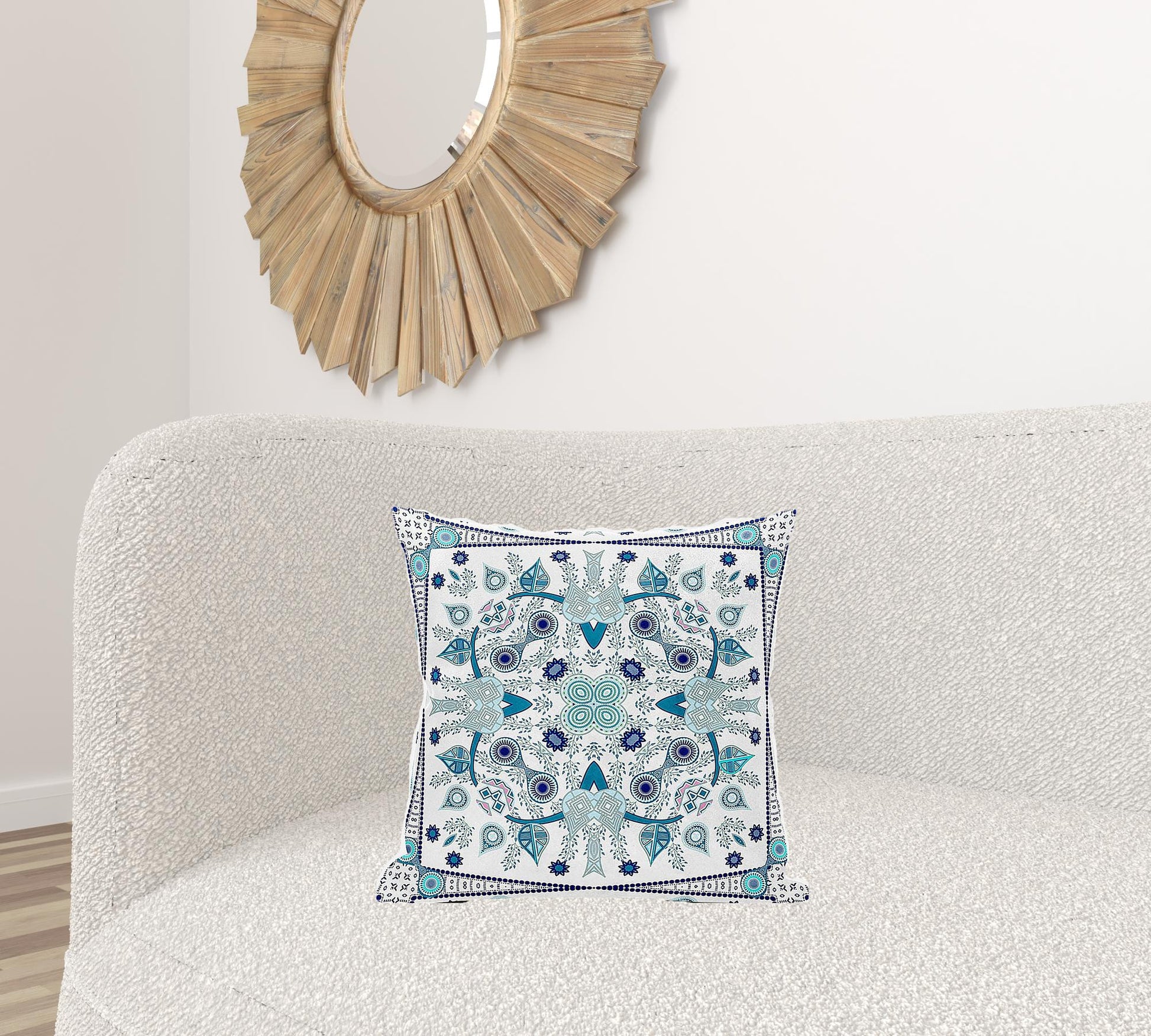 18" X 18" Blue and White Broadcloth Paisley Zippered Pillow