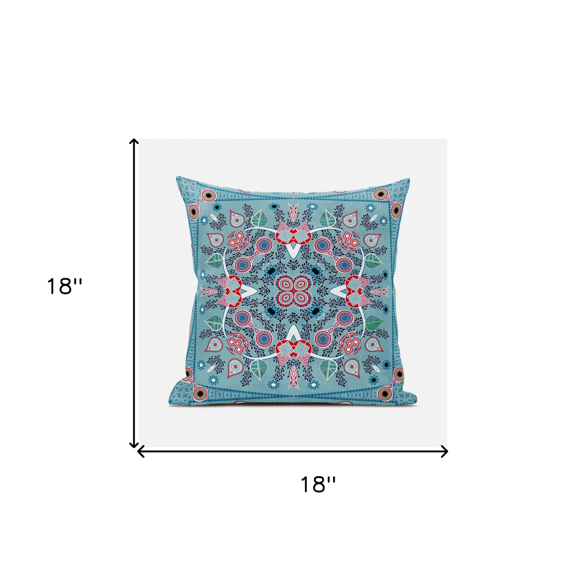 18" X 18" Blue and White Broadcloth Paisley Zippered Pillow