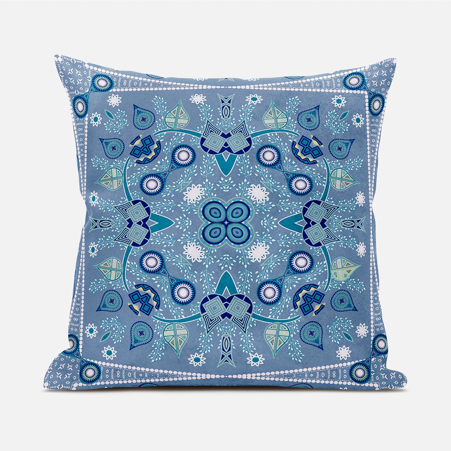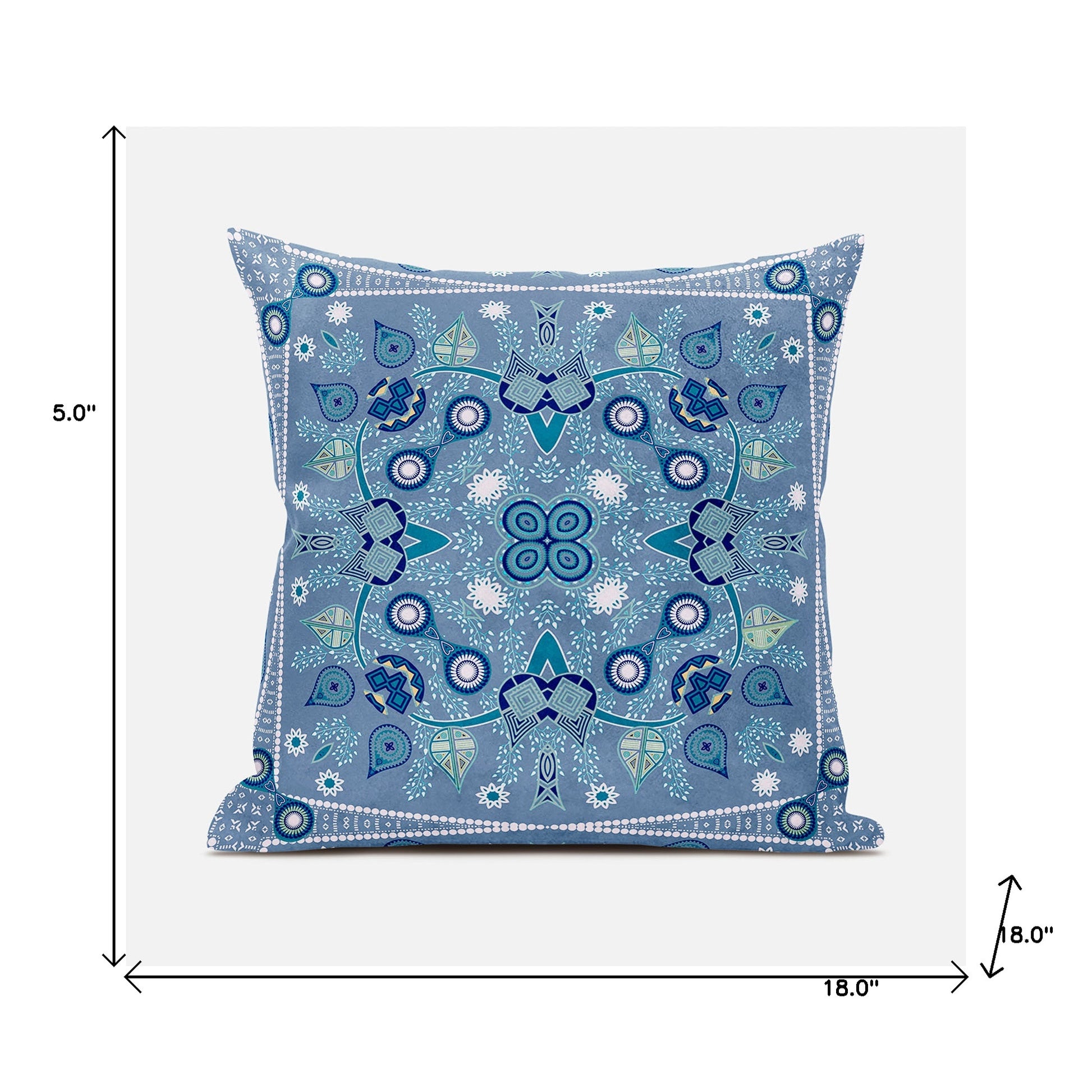 18" X 18" Blue and White Broadcloth Paisley Zippered Pillow