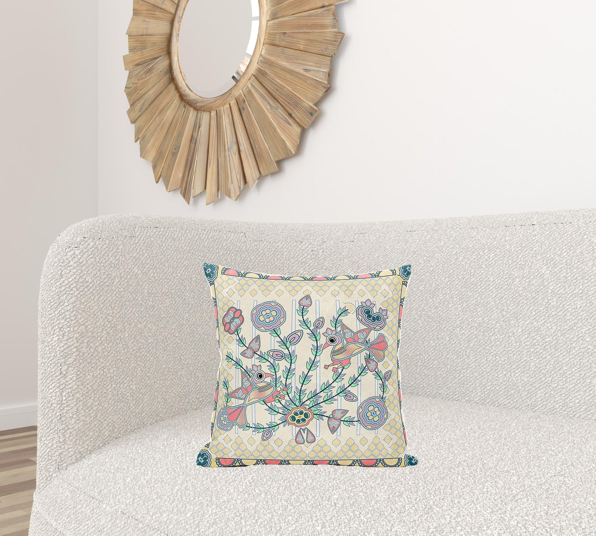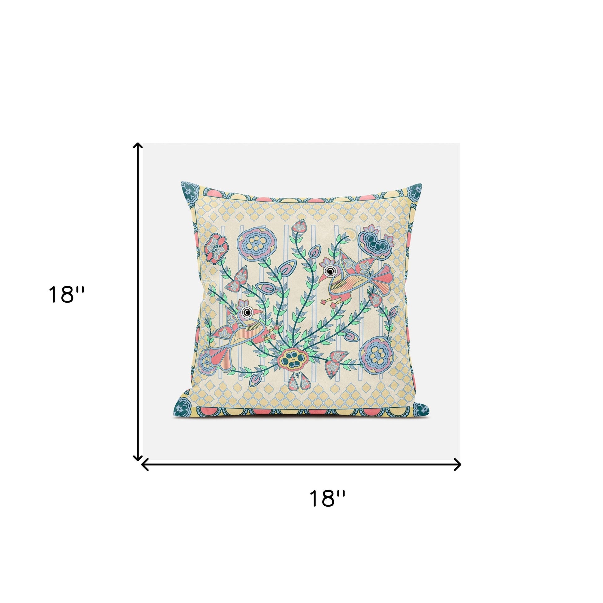 18" X 18" Blue and Yellow Peacock Broadcloth Floral Zippered Pillow