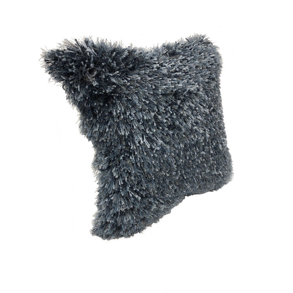 18" X 18" Blue Polyester Zippered Pillow With Shag