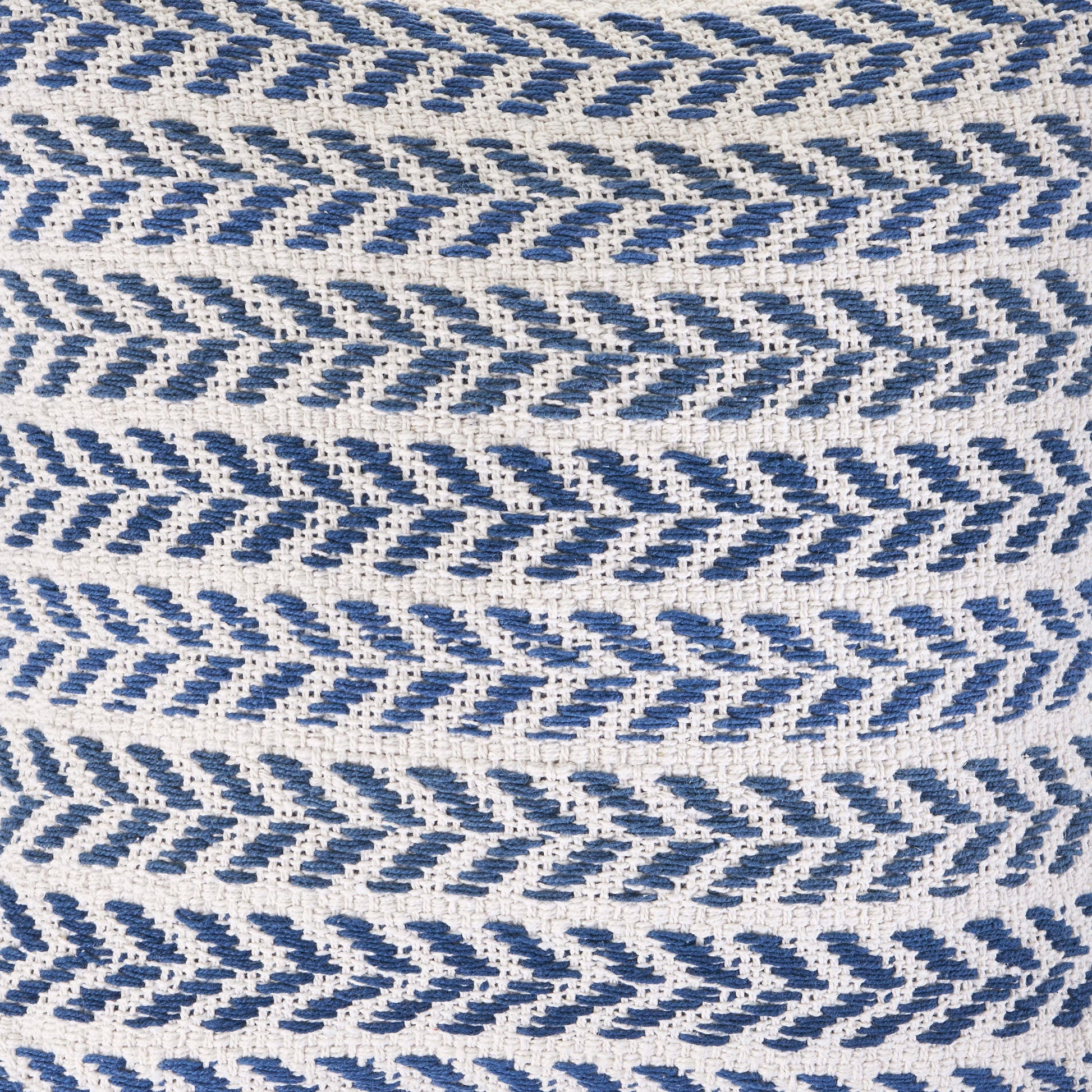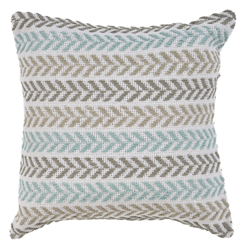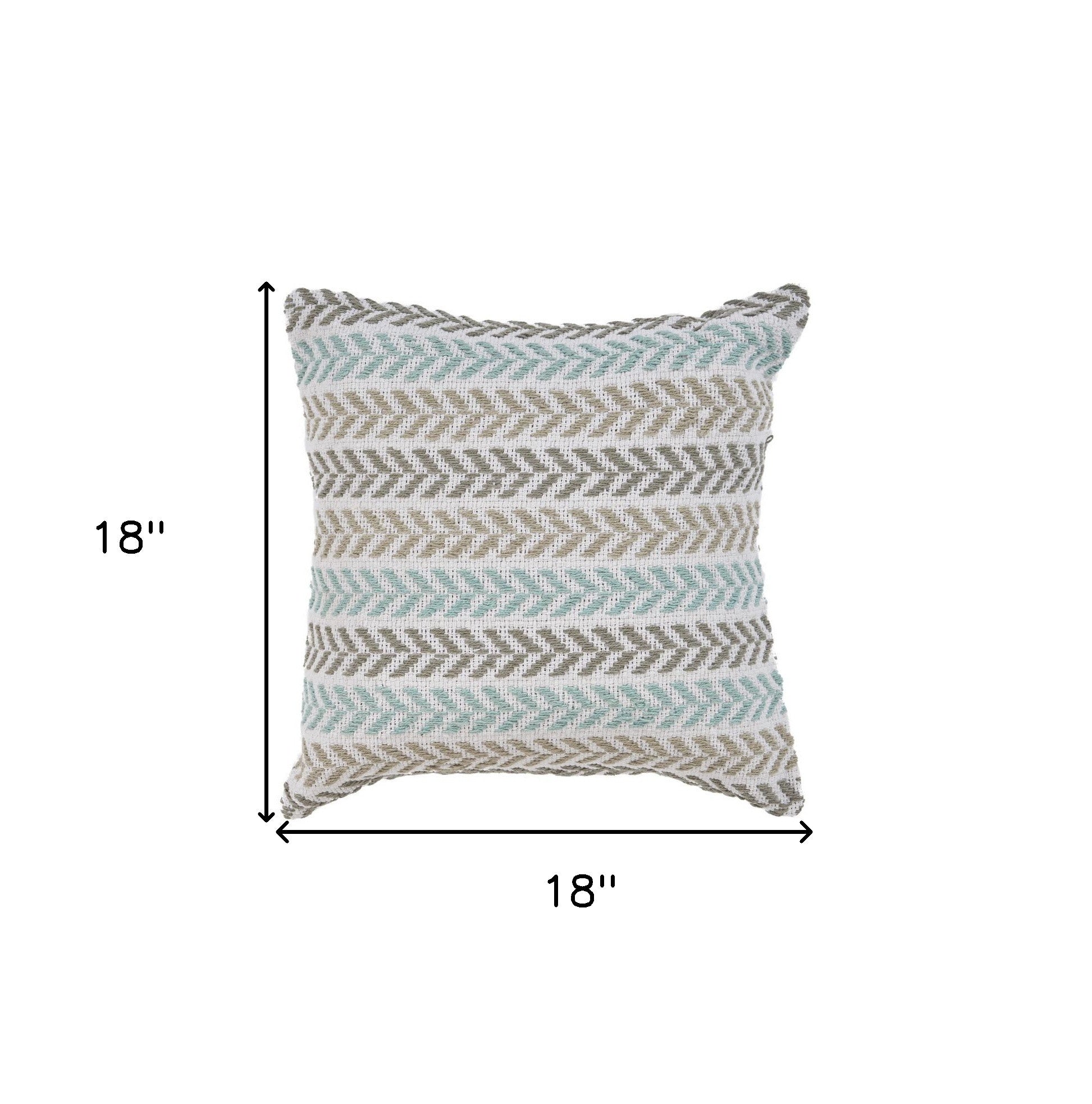 Bring a bit of fashion and zip to your space with this eye-catching and comfy 18" x 18" blue white and gray 100% cotton chevron zippered pillow. This super soft decorative pillow is expertly made of high grade, long lasting 100% cotton in a blue white and gray coloration. Decorative throw pillows not only add color and dimension to your space but can be comfy and supportive when you are lounging and cuddling as well. A great decorative accessory for your favorite chair, to accent your sofa, or to use as part of your bed ensemble. 18" H x 18" W x 18" D