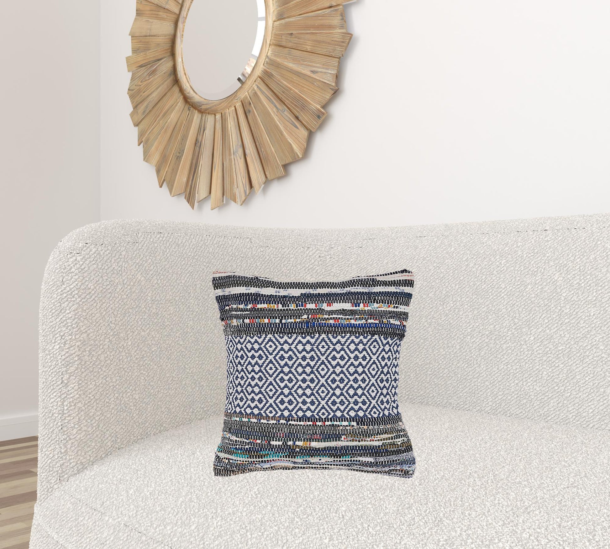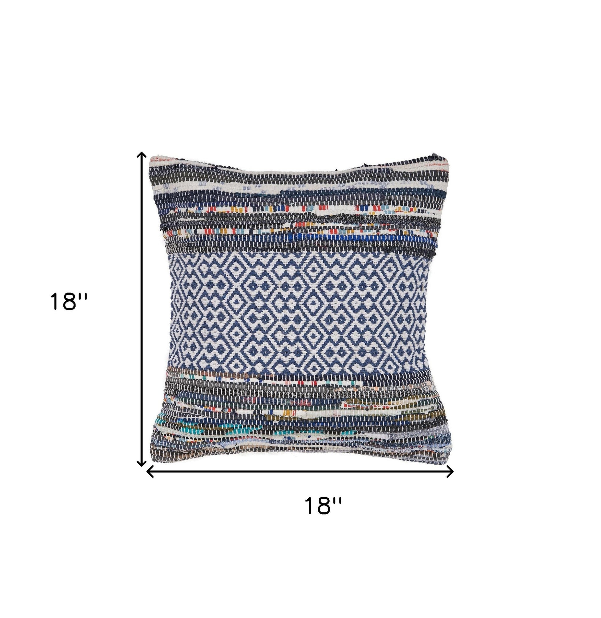 Add an air of fashion to your room and rejuvenate the space with this cute and fashionable 18" x 18" blue white red and yellow 100% cotton striped zippered pillow. The blue white red and yellow coloring of the soft and long lasting 100% cotton will add dimension and texture to your space. Great to use on its own or mix with other decorations for the perfect look. A great decorative accessory for your favorite chair, to accent your sofa, or to use as part of your bed ensemble. 18" H x 18" W x 18" D