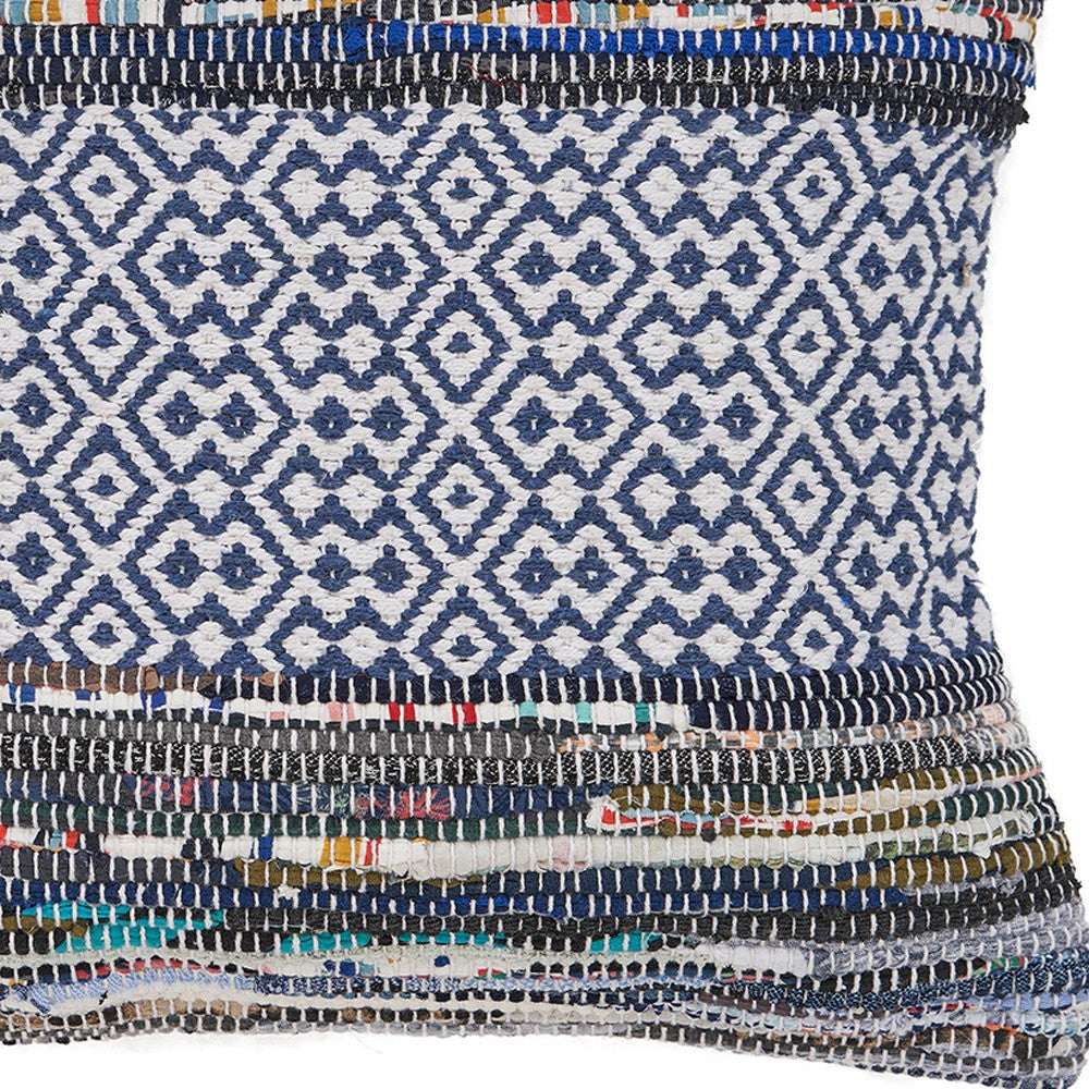 18" X 18" Blue White Red And Yellow 100% Cotton Striped Zippered Pillow