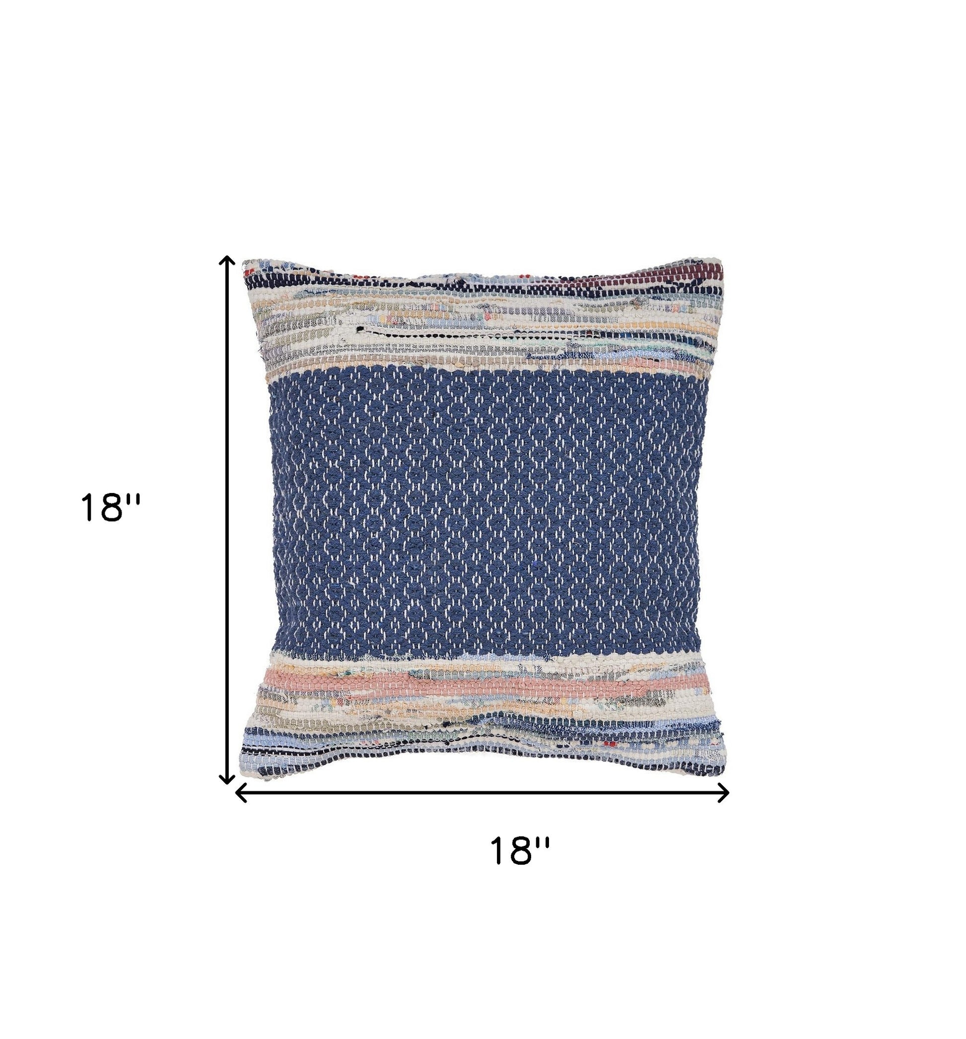 This 18" x 18" blue white red and yellow 100% cotton striped zippered pillow will add a beautiful decorative accent to your decor. The blue white red and yellow coloring of the soft and long lasting 100% cotton will add dimension and texture to your space. Decorative throw pillows not only add color and dimension to your space but can be comfy and supportive when you are lounging and cuddling as well. A great decorative accessory for your favorite chair, to accent your sofa, or to use as part of your bed ensemble. 18" H x 18" W x 18" D