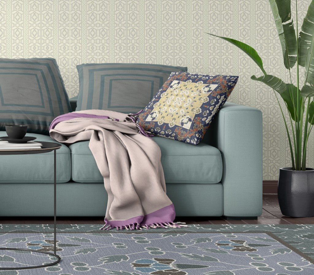 Keywords | seam suede throw pillow, blown seam suede throw pillow, suede throw pillow, blue yellow floral blown seam, 18" X 18" blue yellow floral |