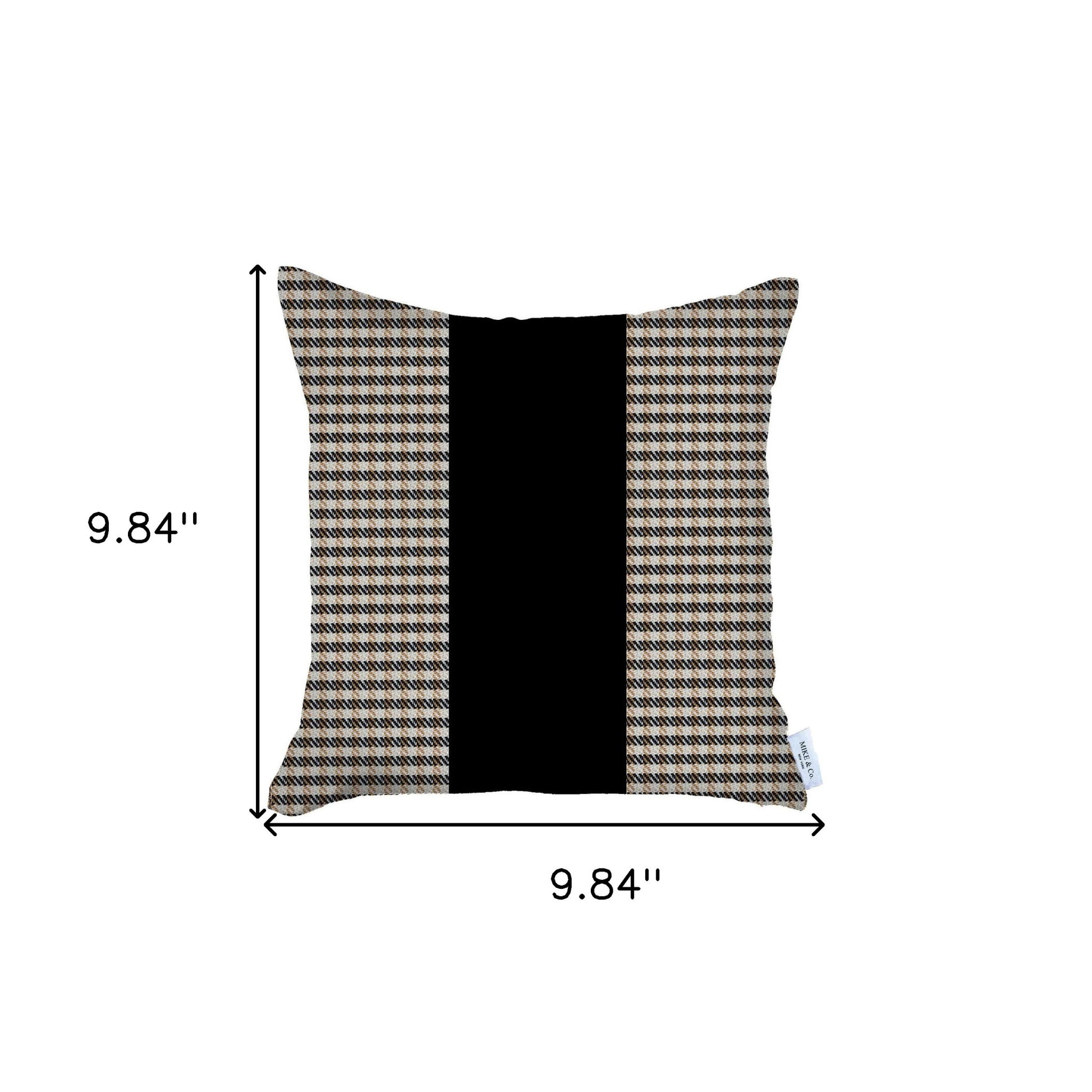 18" X 18" Brown And Black Houndstooth Zippered Handmade Polyester Throw Pillow Cover