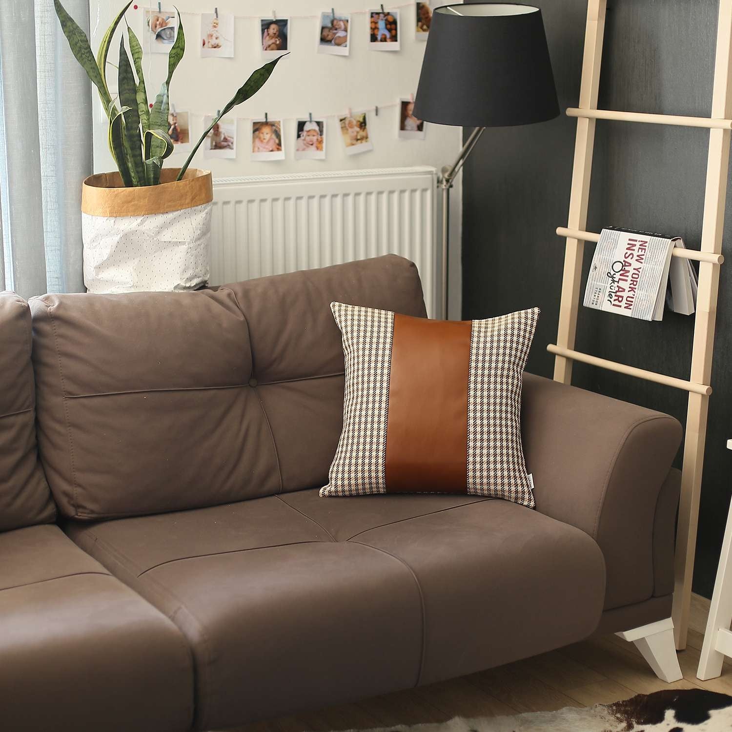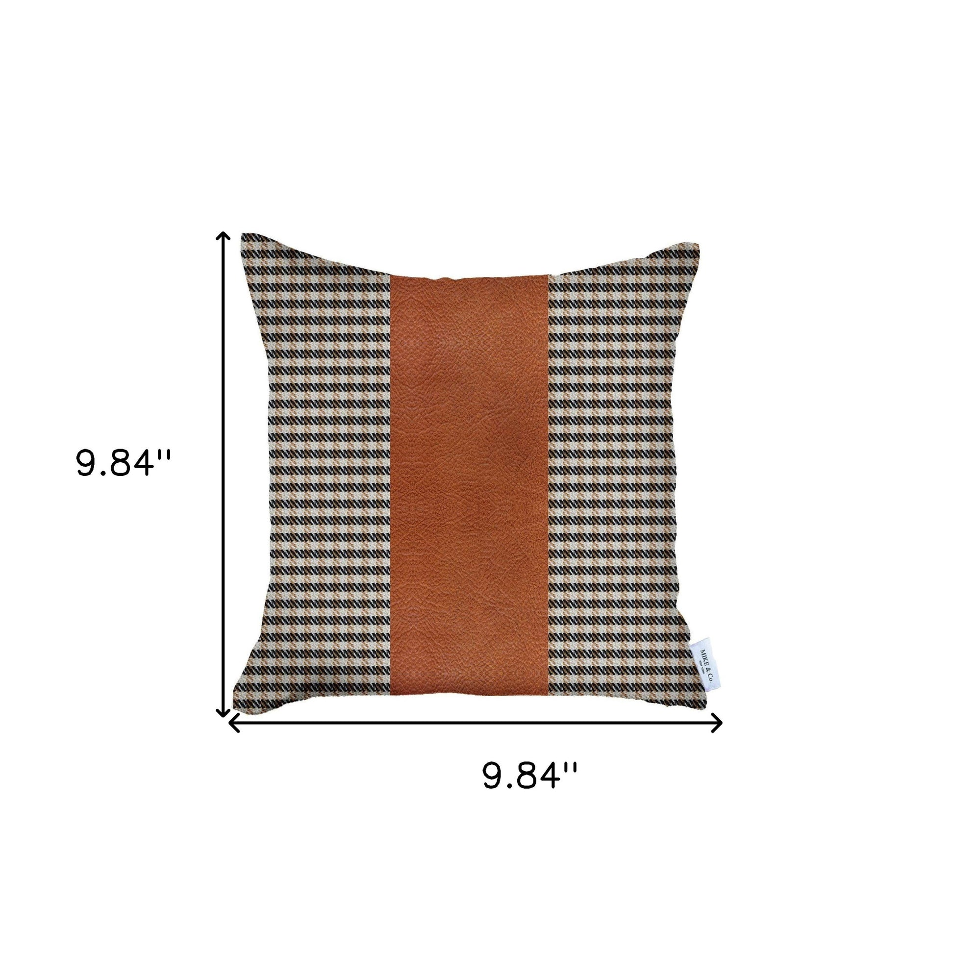 18" X 18" Brown Houndstooth Zippered Handmade Polyester Throw Pillow Cover