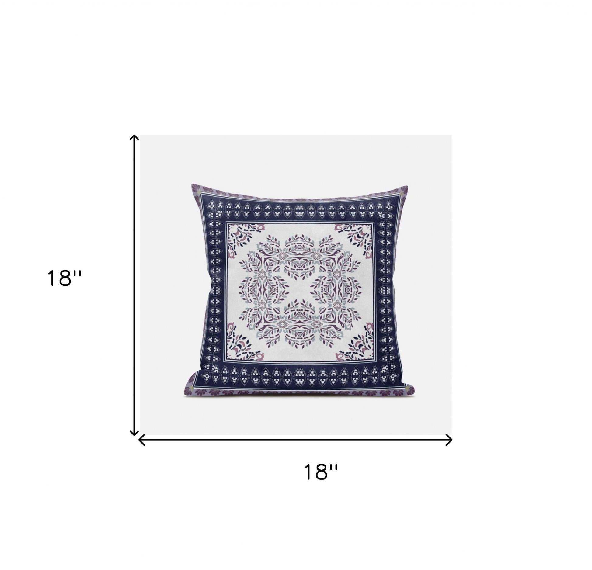 18" X 18" Cream Red Blue Geometric Blown Seam Suede Throw Pillow