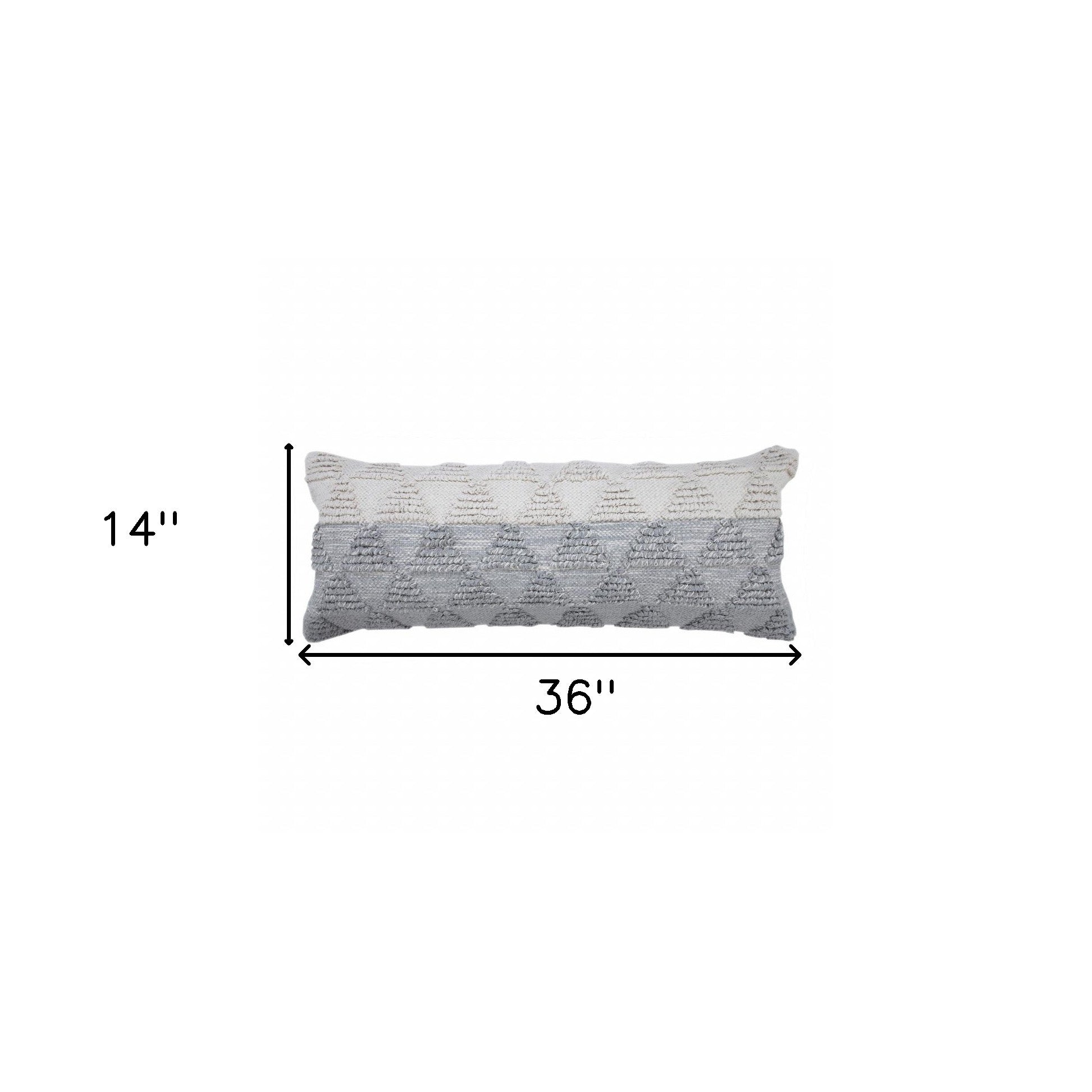 14" X 36" Heathered Gray And Off-White 100% Cotton Geometric Zippered Pillow