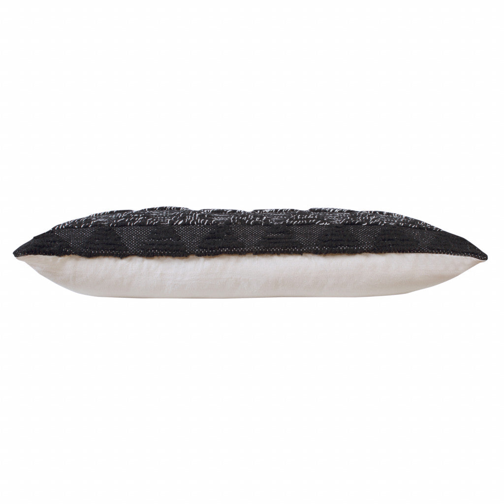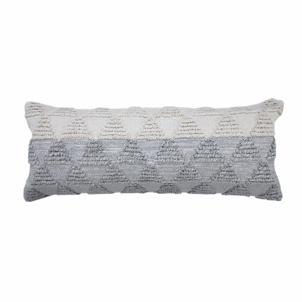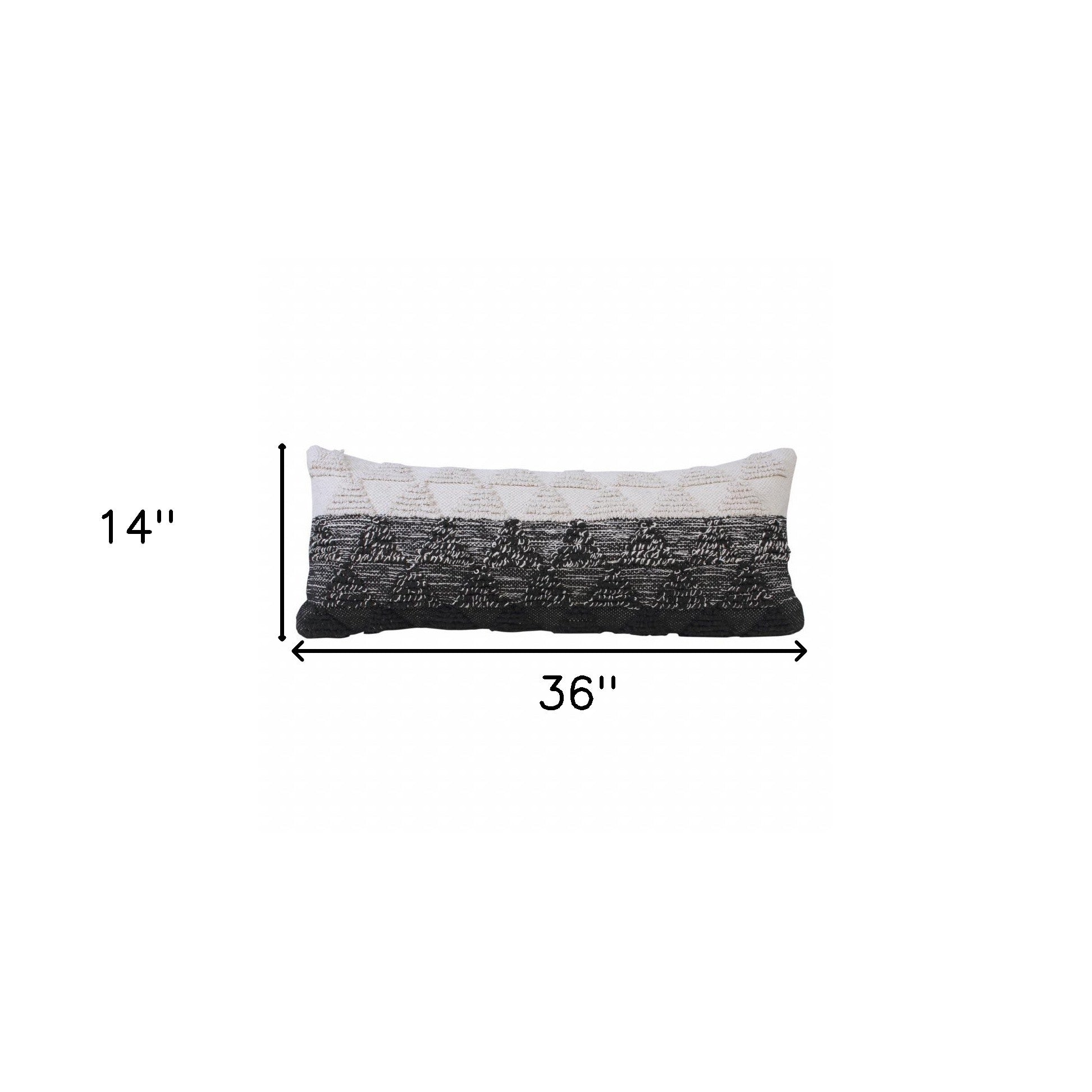 Unique and decorative, this comfortable 14" x 36" heathered gray and off-white 100% cotton geometric zippered pillow will leave a lasting impression. This super soft decorative pillow is expertly made of high grade, long lasting 100% cotton in a heathered gray and off-white coloration. Decorative throw pillows not only add color and dimension to your space but can be comfy and supportive when you are lounging and cuddling as well. Decorative pillows are a great way to change up the look and feel of your space easily and quickly. 14" H x 14" W x 36" D