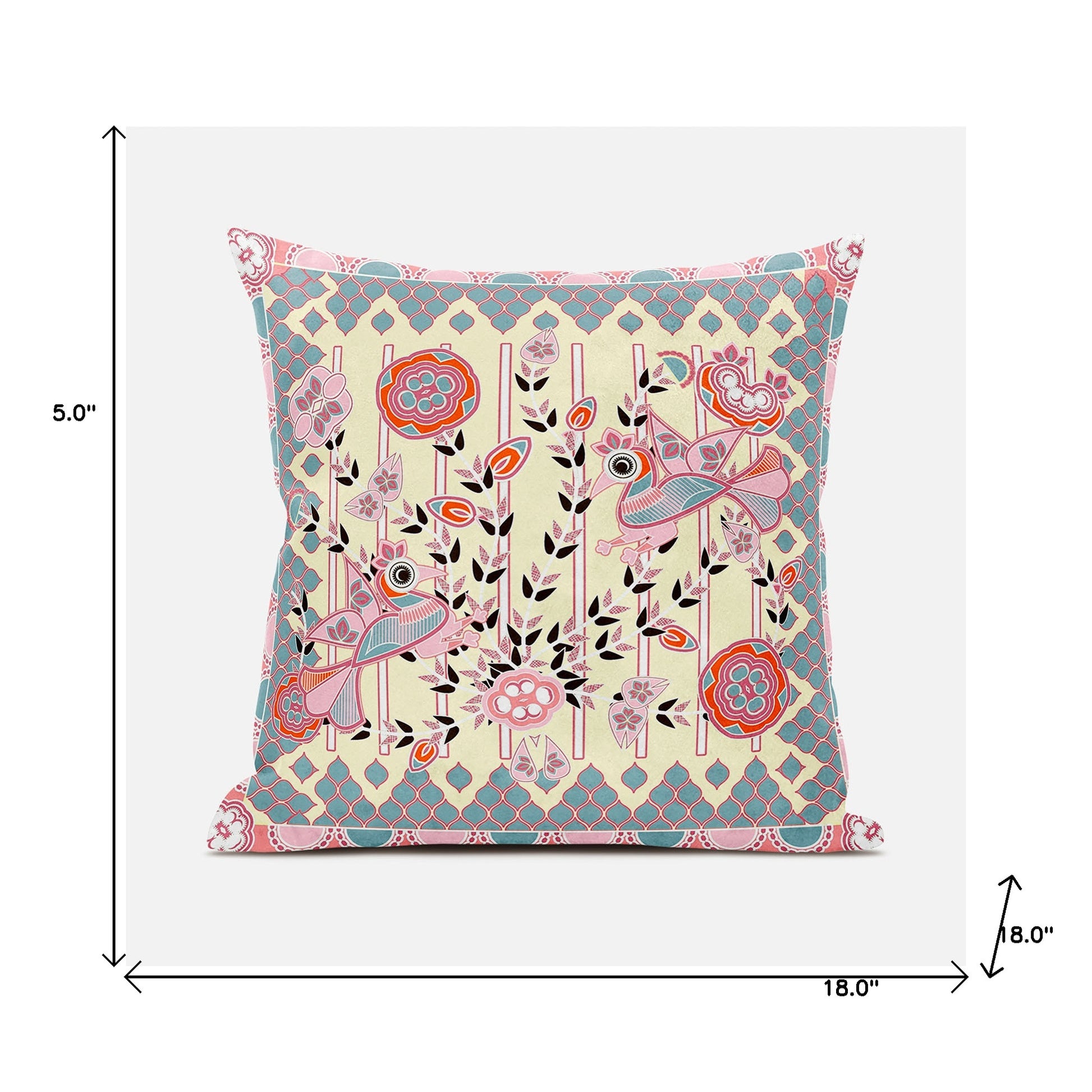 18" X 18" Gray and Orange Peacock Broadcloth Floral Zippered Pillow