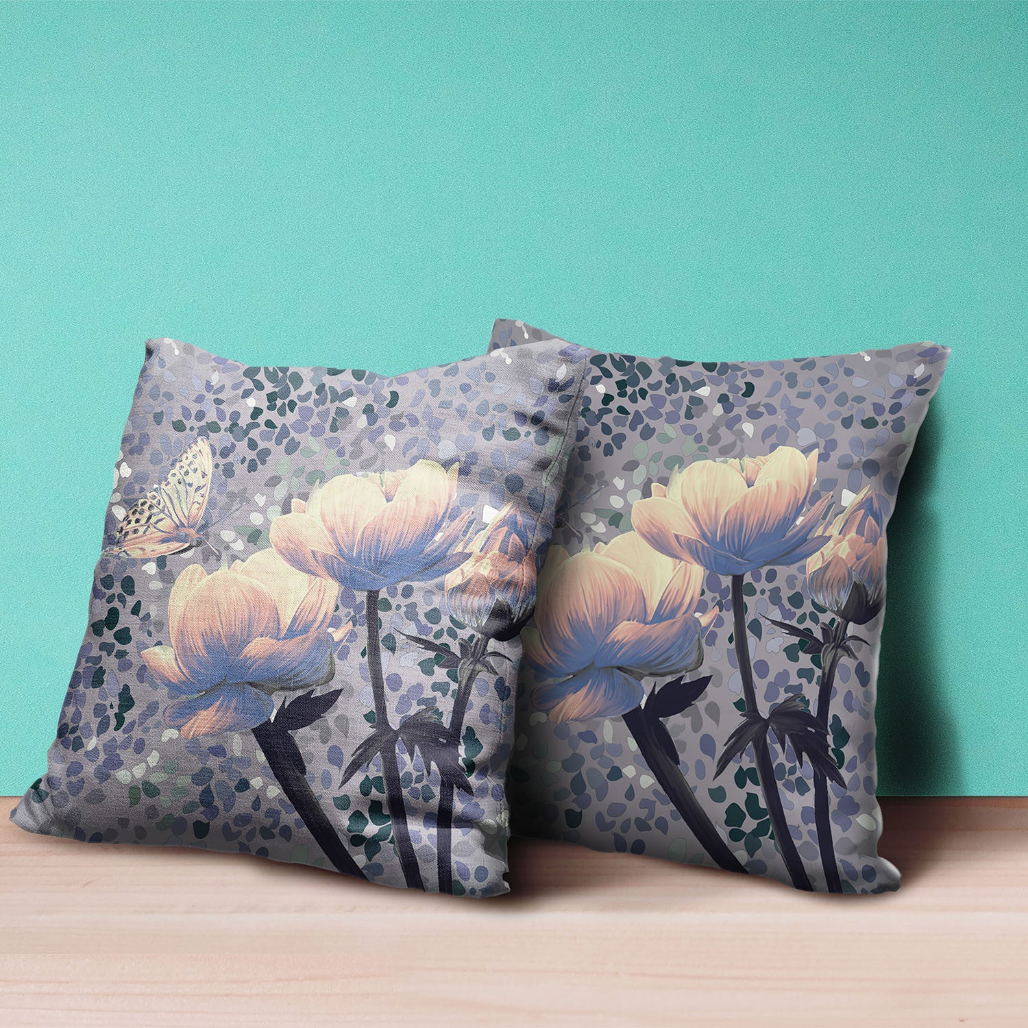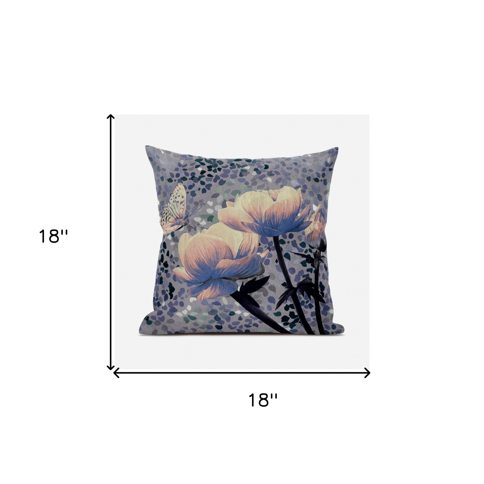 18" X 18" Gray and Yellow Butterfly Broadcloth Floral Zippered Pillow