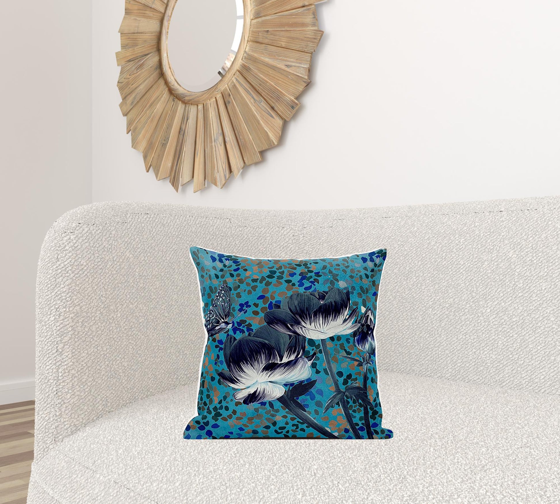 The perfect complement to your sofa, favorite chair, or bed, this 18" x 18" green and white butterfly broadcloth floral zippered pillow is a great decorative accent. This green and white colored decorative pillow is made from high grade broadcloth that is durable and long lasting. Decorative throw pillows not only add color and dimension to your space but can be comfy and supportive when you are lounging and cuddling as well. A great decorative accessory for your favorite chair, to accent your sofa, or to use as part of your bed ensemble. 5" H x 18" W x 18" D