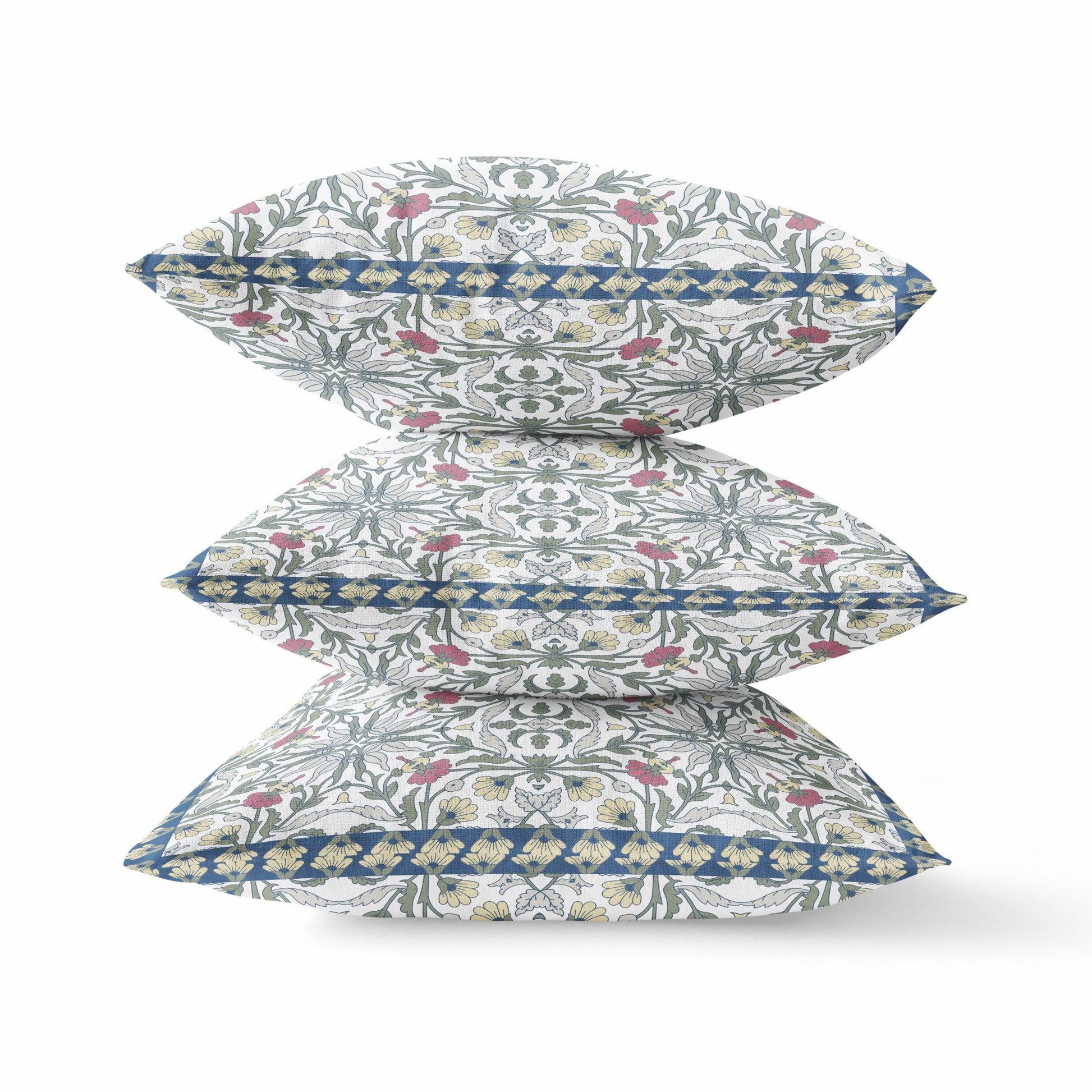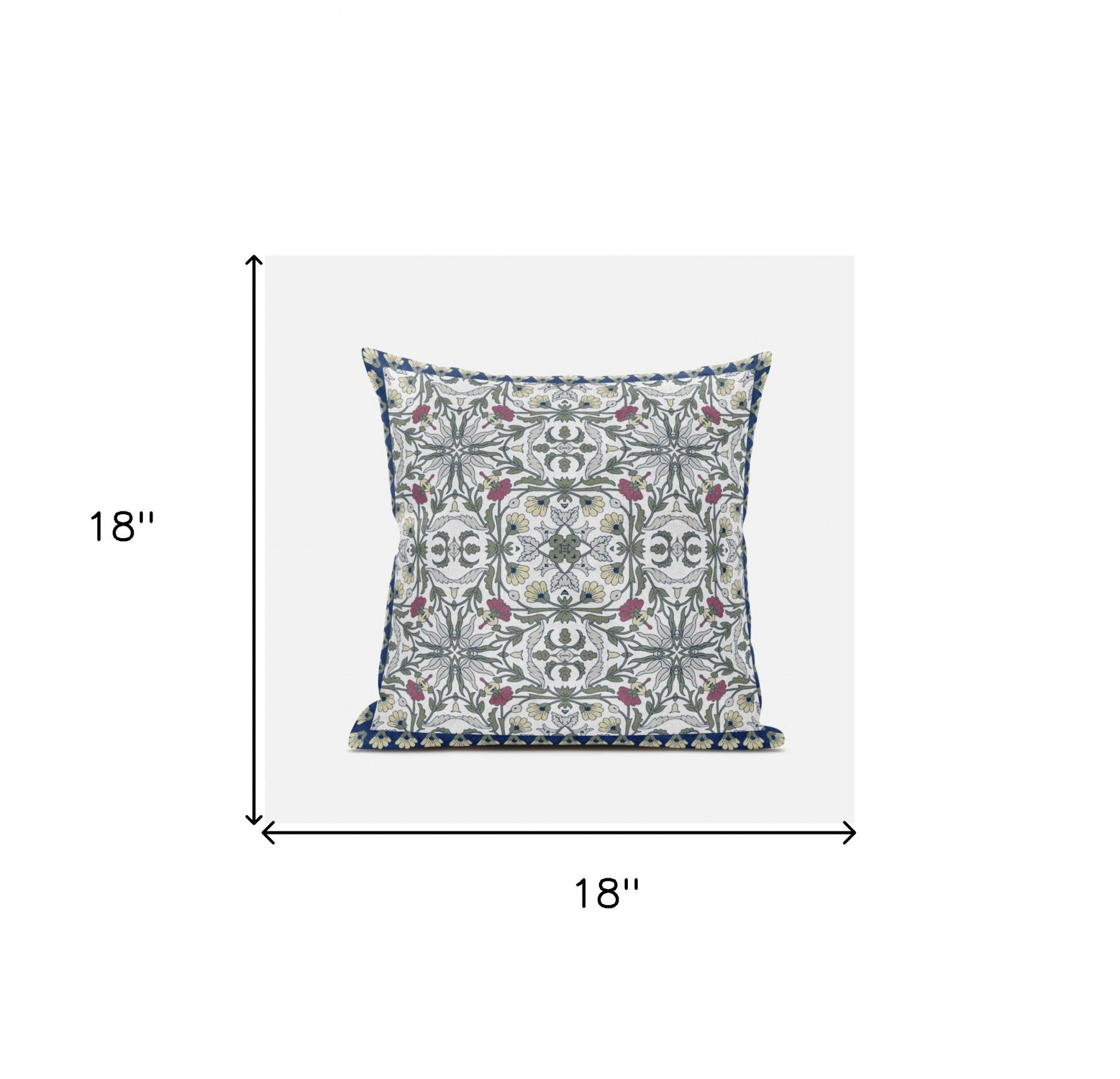 18" X 18" Green White Pink Paisley Blown Seam Suede Throw Pillow