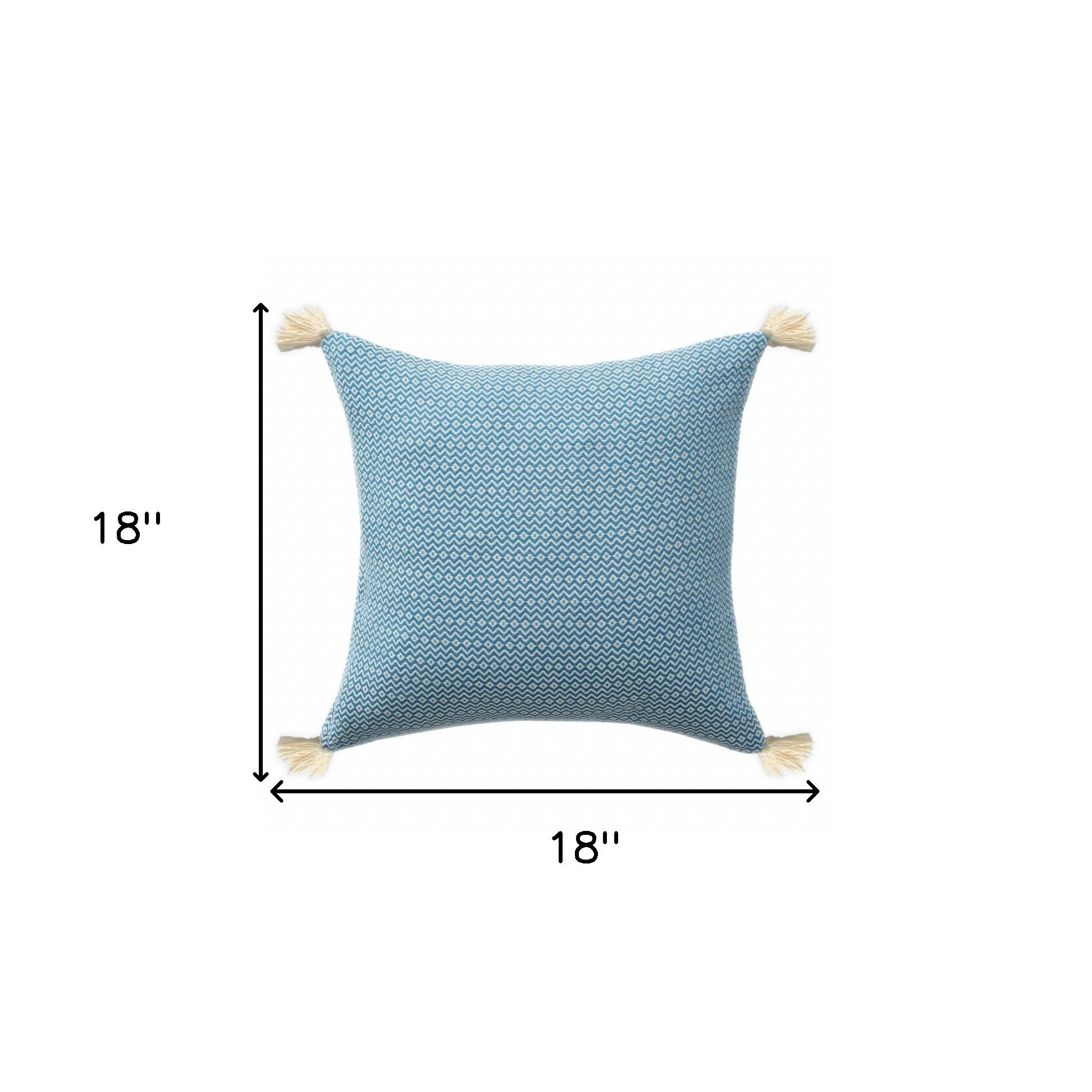 18" X 18" Light Blue 100% Cotton Geometric Zippered Pillow