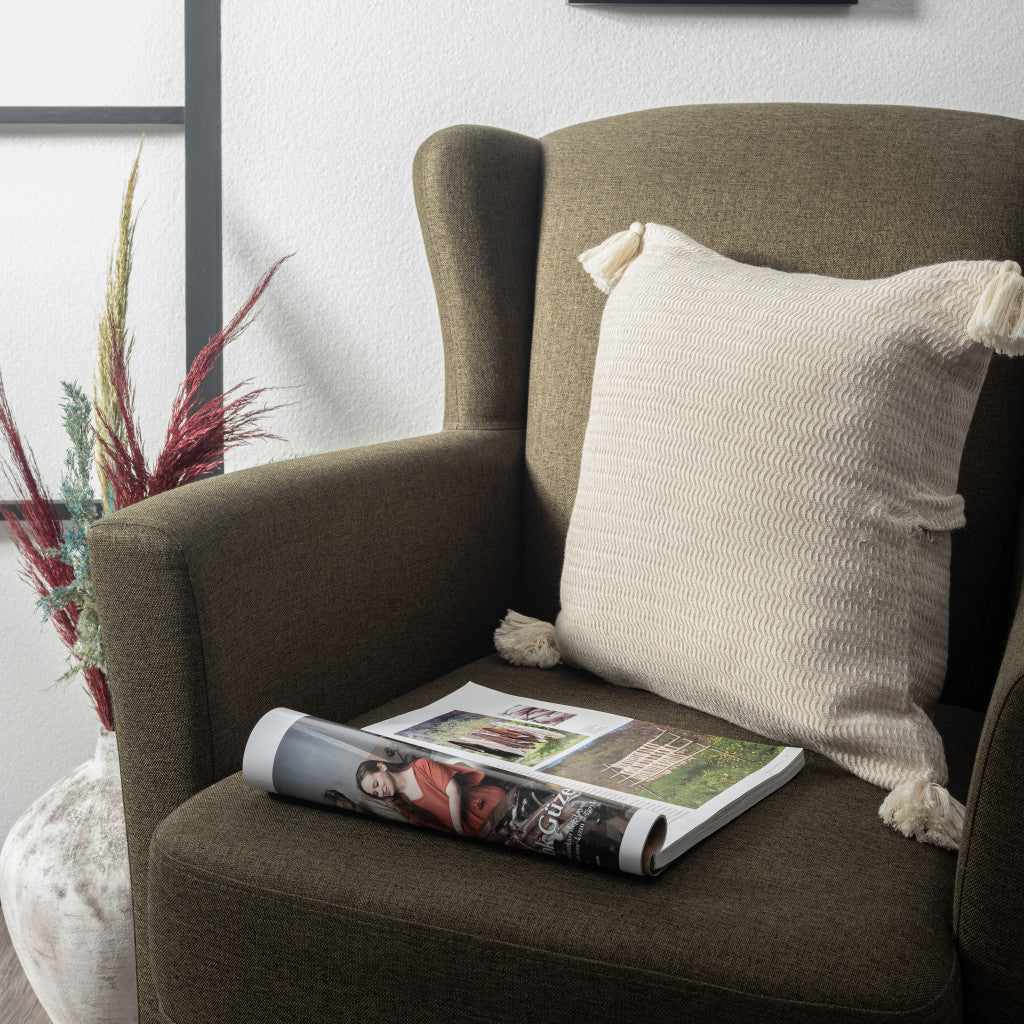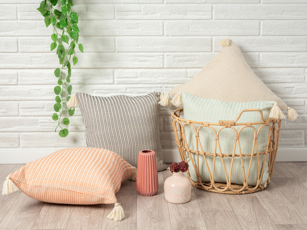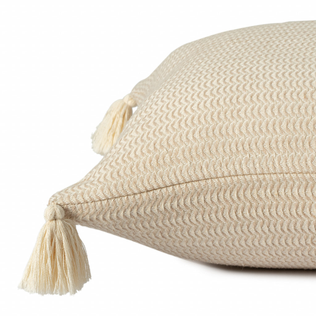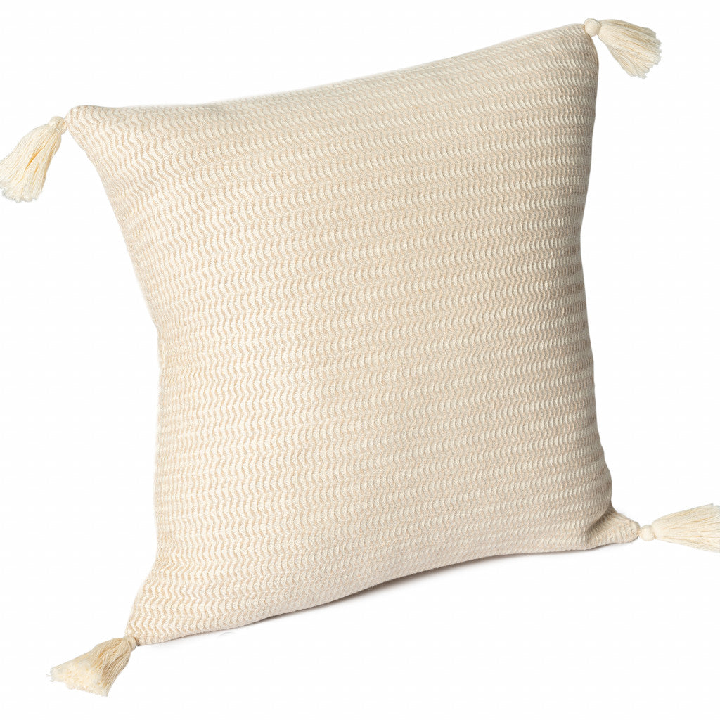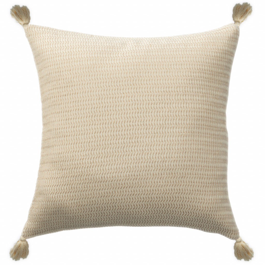 This 18" x 18" beige and ivory 100% cotton striped zippered pillow will add a beautiful decorative accent to your decor. Soft and textural beige and ivory 100% cotton has been used to make this pillow look and feel like a real treasure. Decorative throw pillows not only add color and dimension to your space but can be comfy and supportive when you are lounging and cuddling as well. A great decorative accessory for your favorite chair, to accent your sofa, or to use as part of your bed ensemble. 18" H x 18" W x 18" D