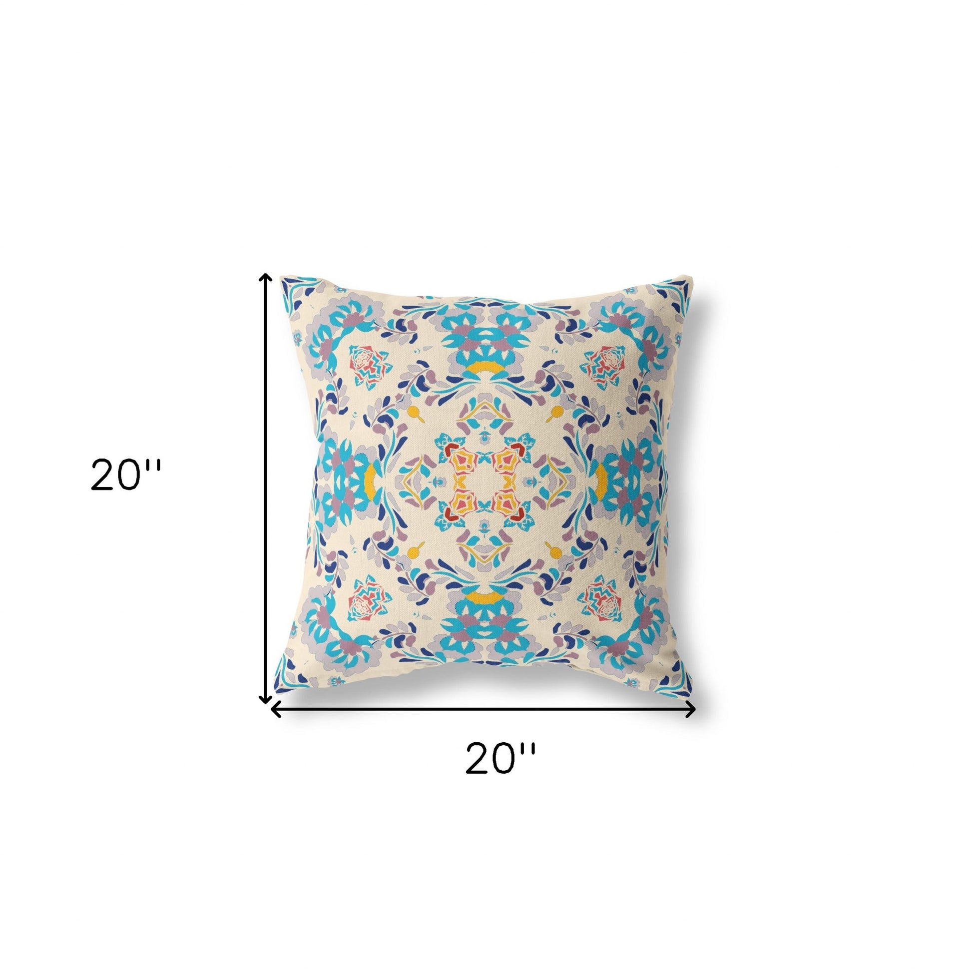 18" X 18" Off White And Blue Abstract Blown Seam Suede Throw Pillow