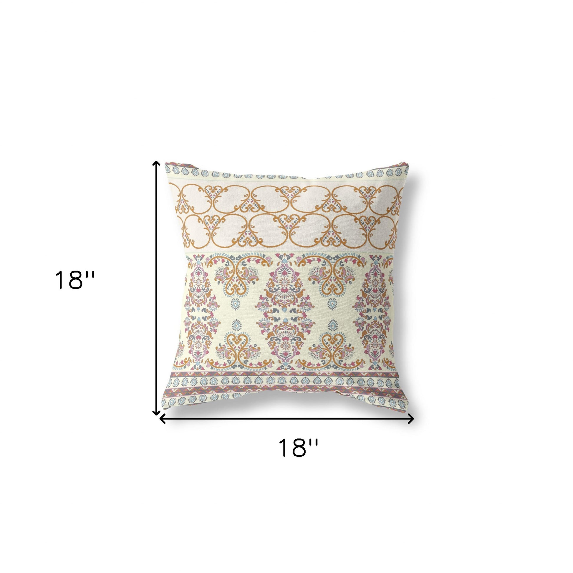 18" X 18" Off White And Orange Stencil Blown Seam Suede Throw Pillow