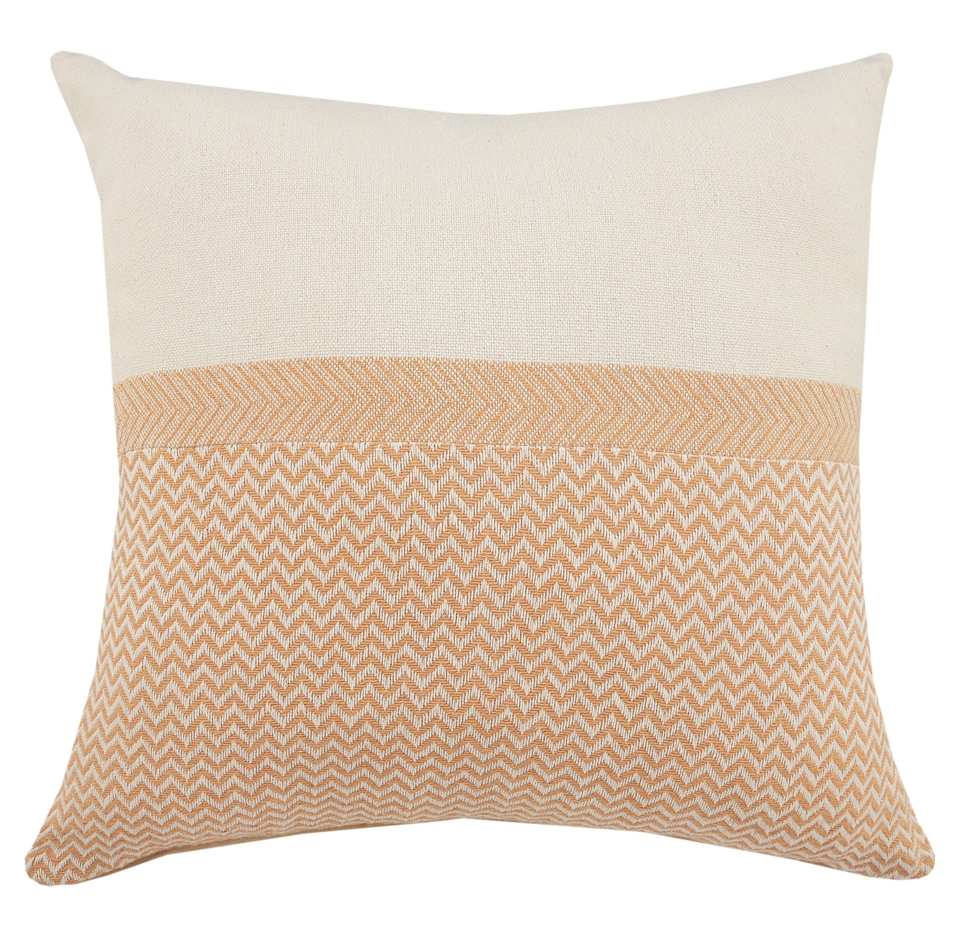 Bring a bit of fashion and zip to your space with this eye-catching and comfy 18" x 18" orange and off-white 100% cotton chevron zippered pillow. This orange and off-white colored decorative pillow is made from high grade 100% cotton that makes it super soft to the touch and long lasting. Great to use on its own or mix with other decorations for the perfect look. Decorative pillows are a great way to change up the look and feel of your space easily and quickly. 18" H x 18" W x 18" D