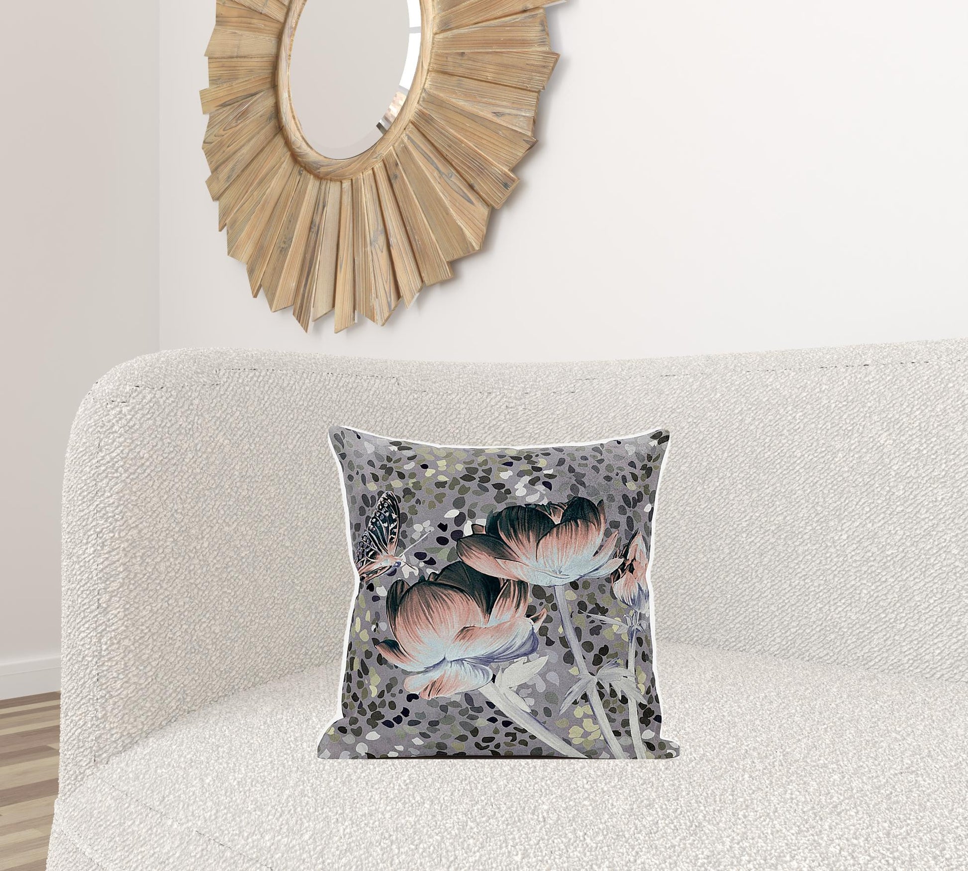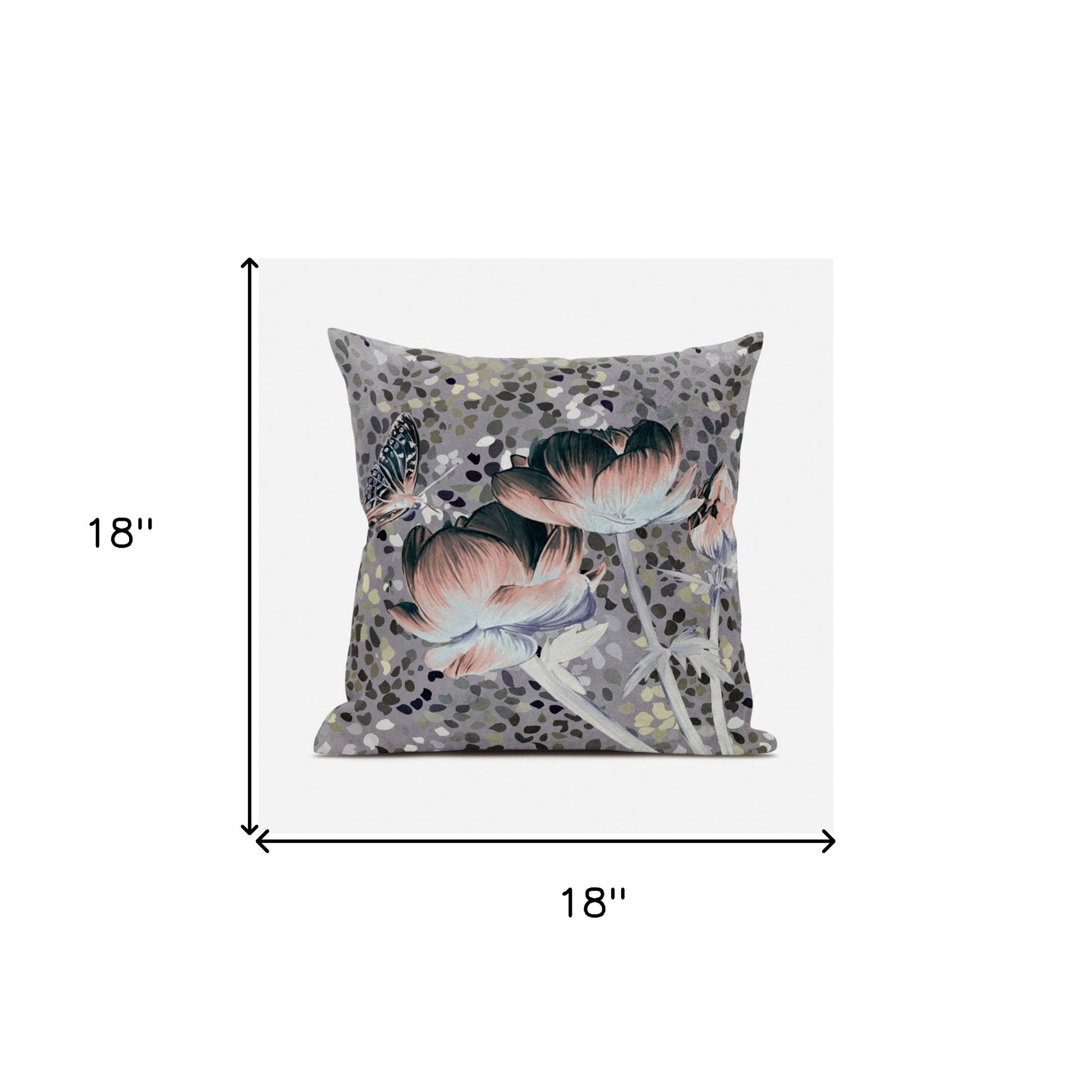 18" X 18" Pink and Green Butterfly Broadcloth Floral Zippered Pillow