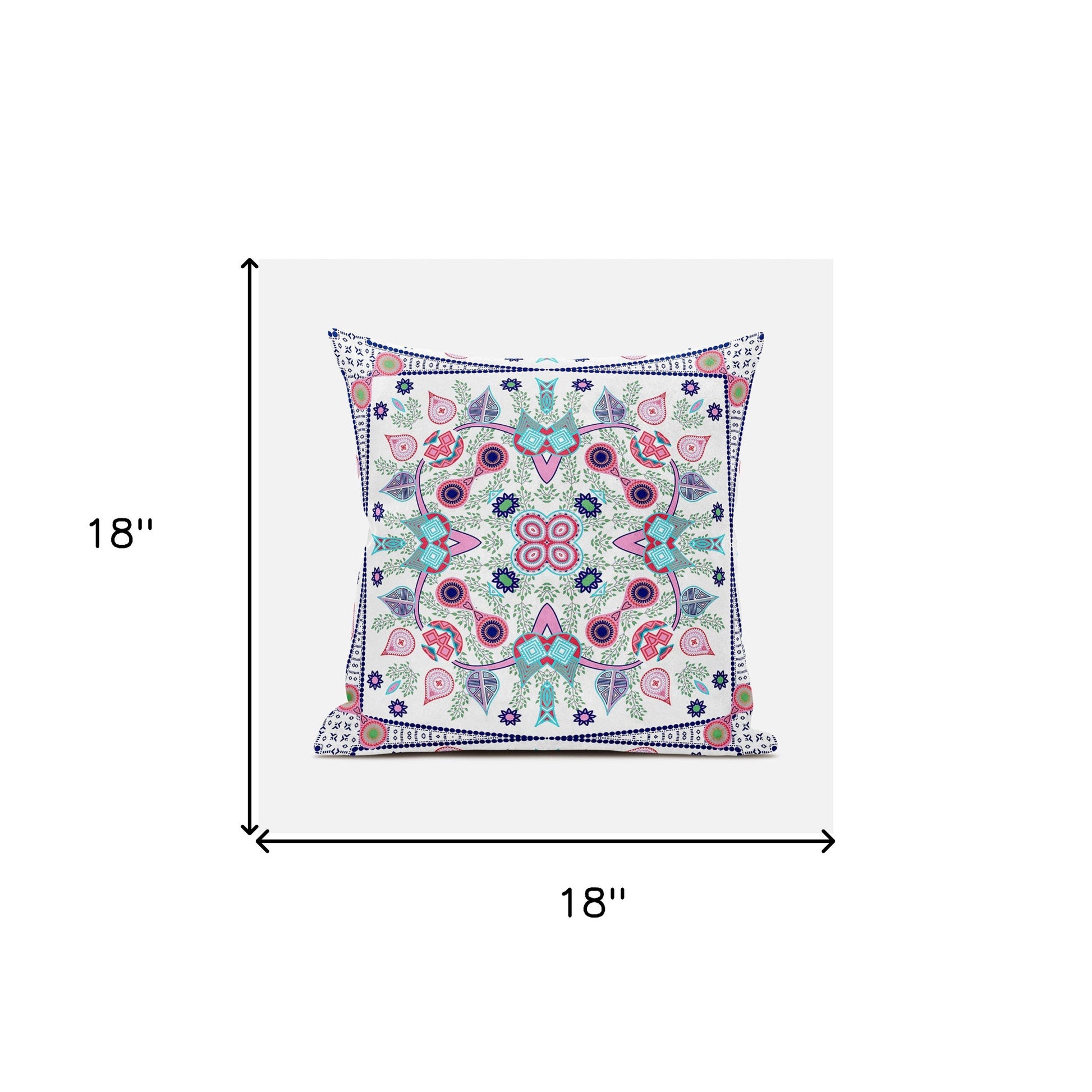 18" X 18" Pink and White Broadcloth Paisley Zippered Pillow