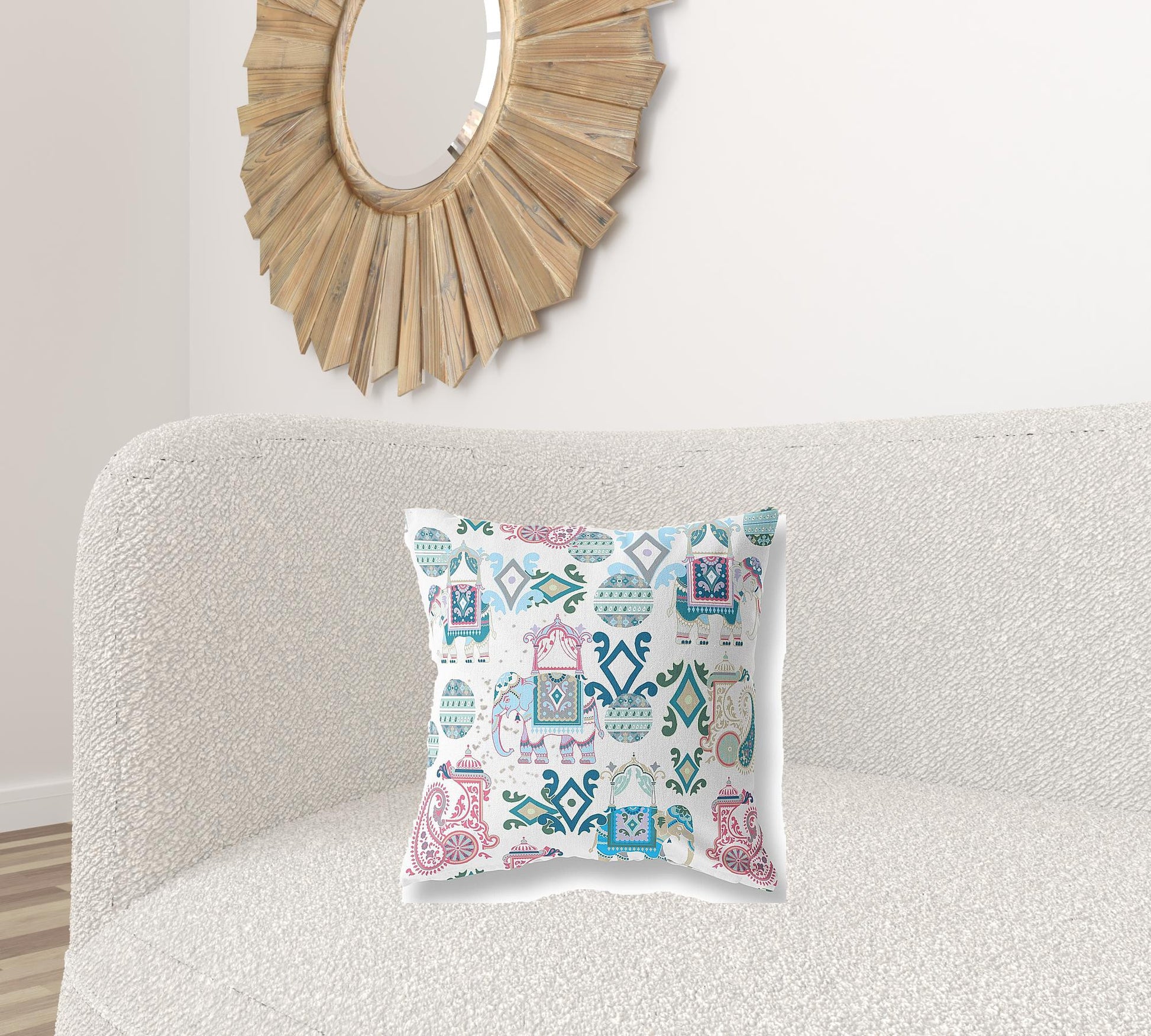 18" X 18" Pink And White Paisley Zippered Suede Throw Pillow