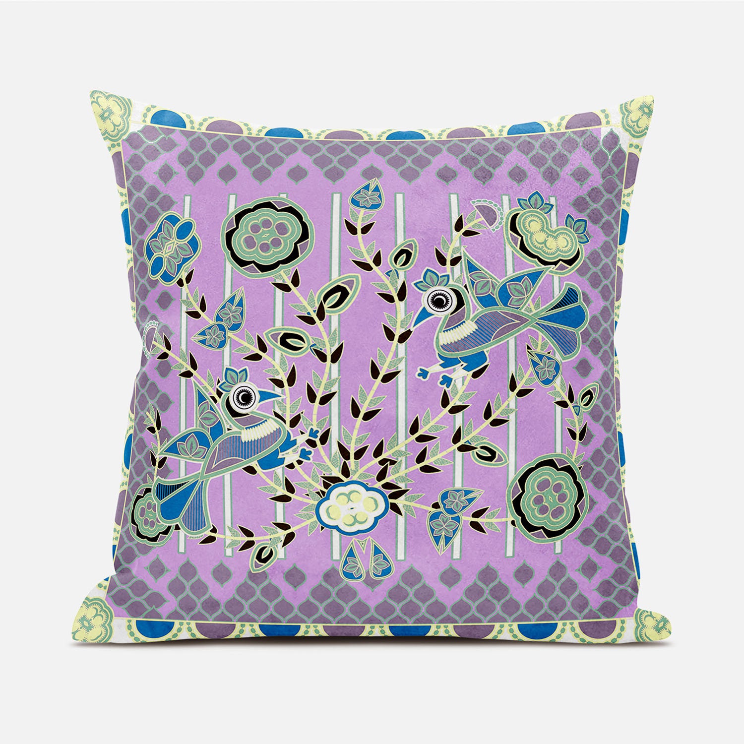 18" X 18" Purple and Black Peacock Broadcloth Floral Zippered Pillow
