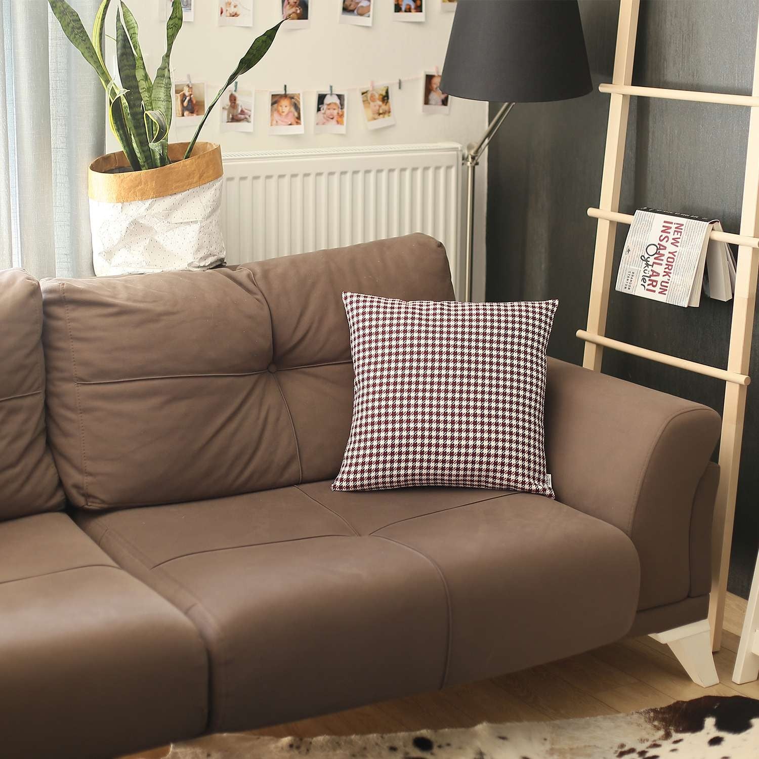 18" X 18" Red Houndstooth Zippered Handmade Polyester Throw Pillow Cover