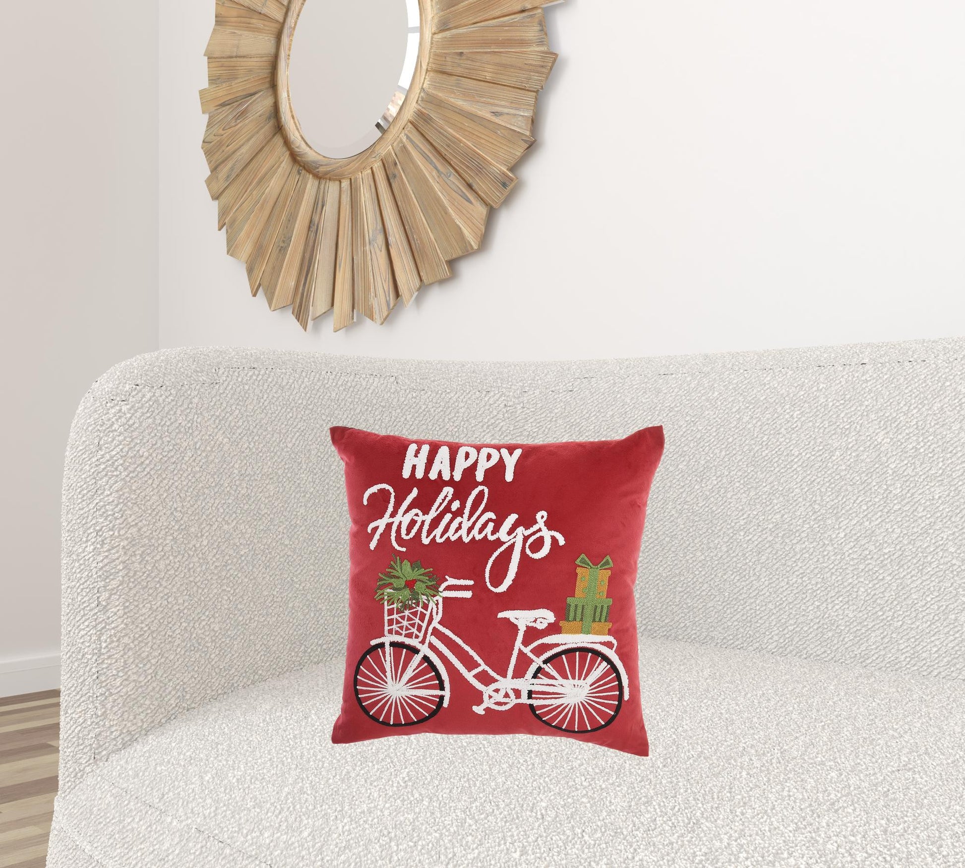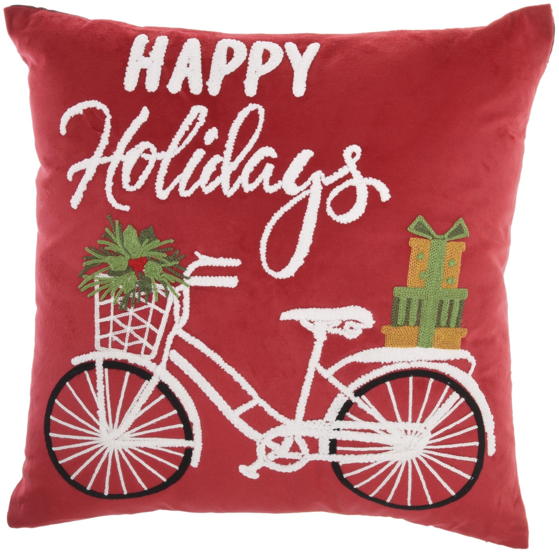 Add some Christmas cheer to your space with this 18" x 18" red zippered handmade polyester christmas throw pillow. Durable red polyester has been used to give this pillow a beautiful look that will stand the test of time. Decorative throw pillows not only add color and dimension to your space but can be comfy and supportive when you are lounging and cuddling as well. A great decorative accessory for your favorite chair, to accent your sofa, or to use as part of your bed ensemble. 5.00" H x 18.00" W x 18.00" D