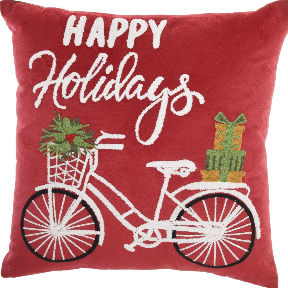 18" X 18" Red Zippered Handmade Polyester Christmas Throw Pillow
