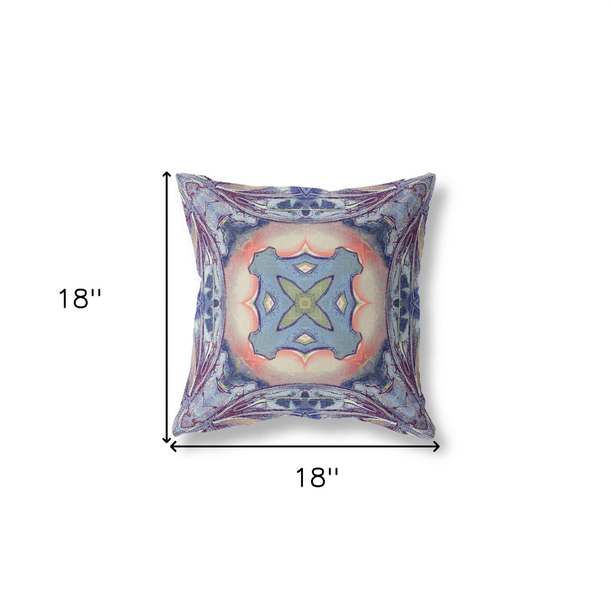 18" X 18" Sky Blue Indigo Muted Peach Geometric Zippered Suede Throw Pillow