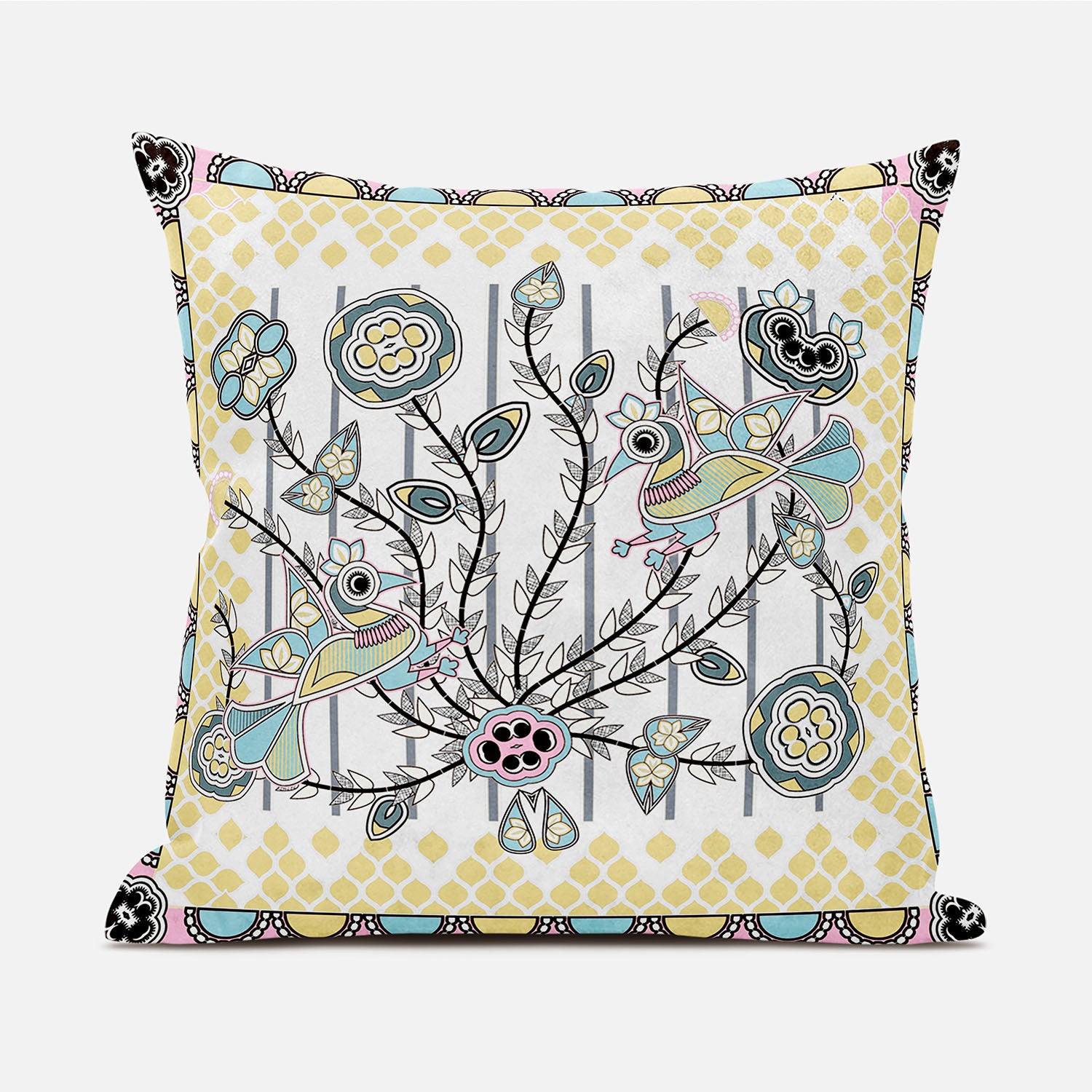 18" X 18" Yellow and White Peacock Broadcloth Floral Zippered Pillow