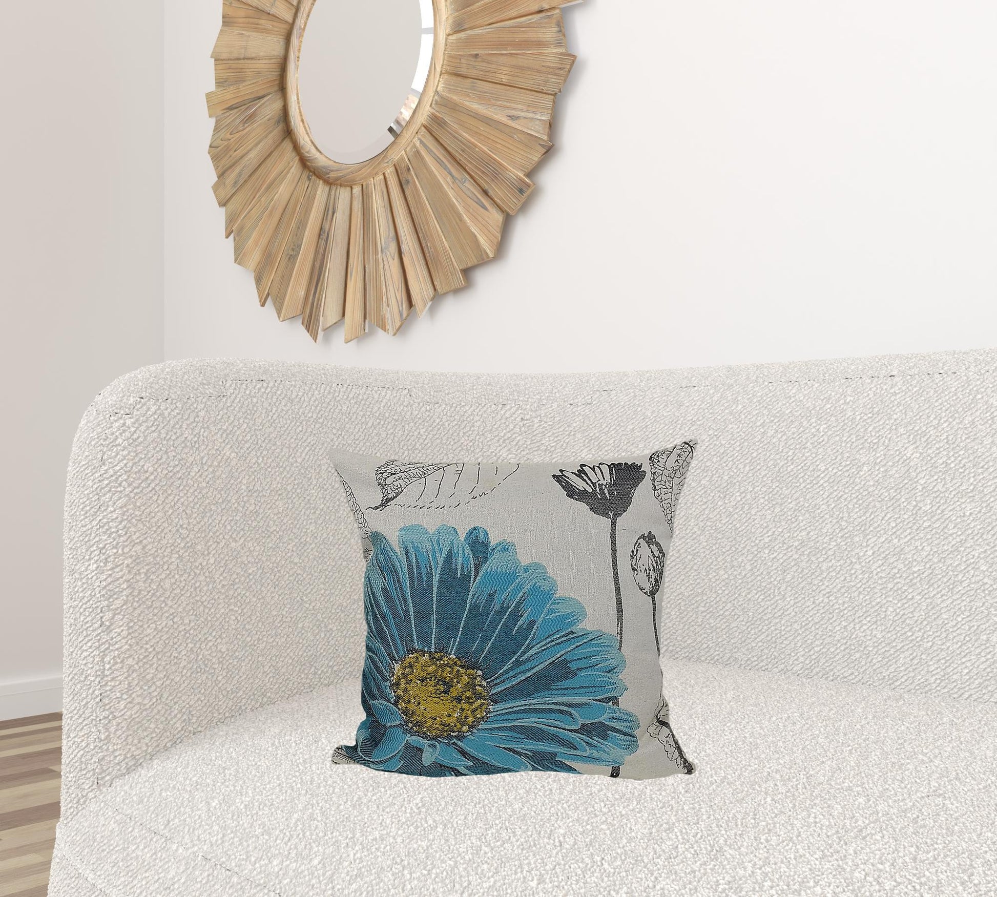 18"x18" Blue Polyester and Cotton Blend Floral Zippered Pillow