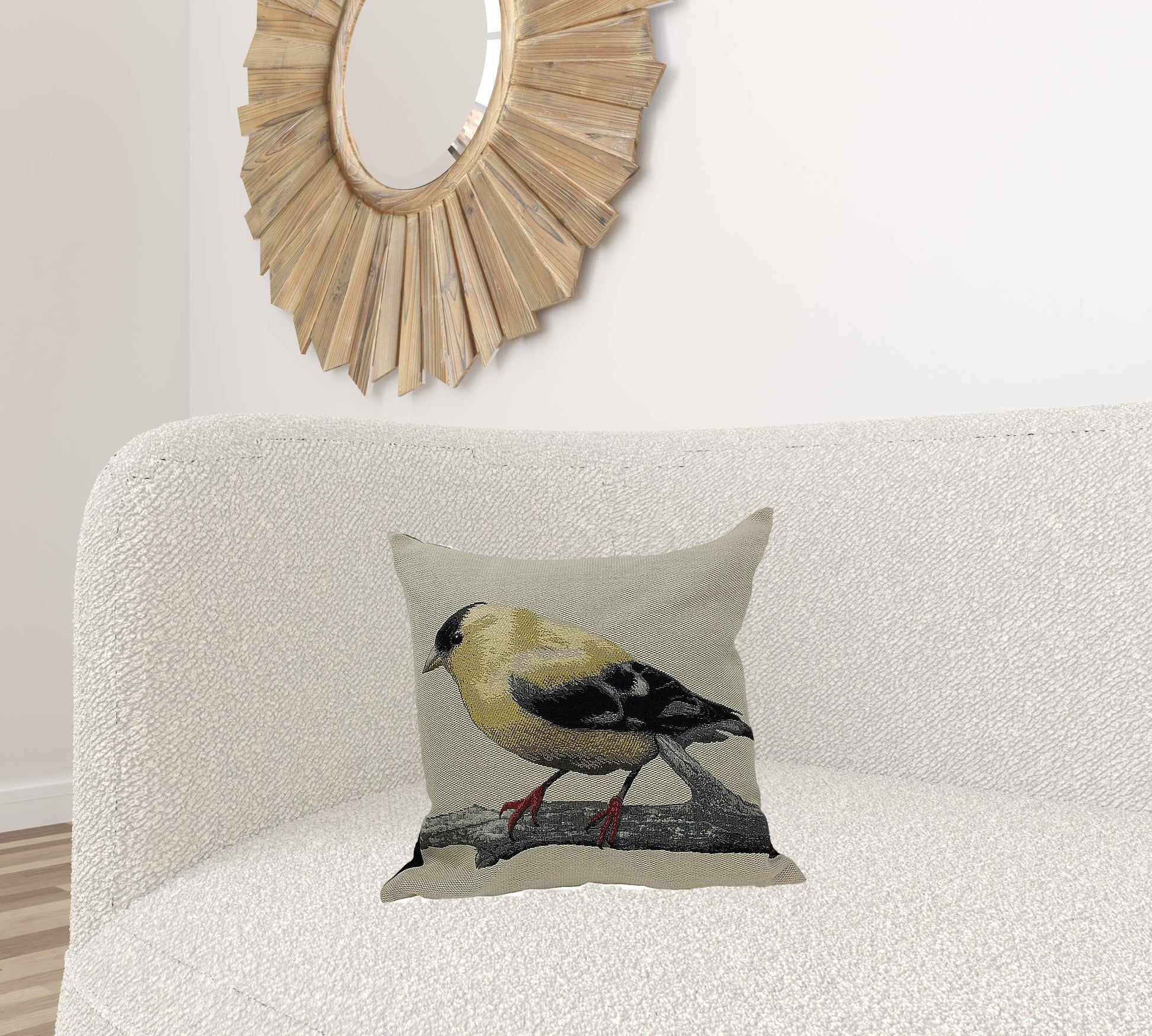The perfect complement to your sofa, favorite chair, or bed, this 18-inchx18-inch gold bird polyester and cotton blend zippered pillow is a great decorative accent. This gold hued piece represents quality construction, expertly made from durable polyester and cotton blend that is not only long lasting but soft to the touch as well. Great to use on its own or mix with other decorations for the perfect look. A great decorative accessory for your favorite chair, to accent your sofa, or to use as part of your bed ensemble. 18-inch H x 18-inch W x 6-inch D