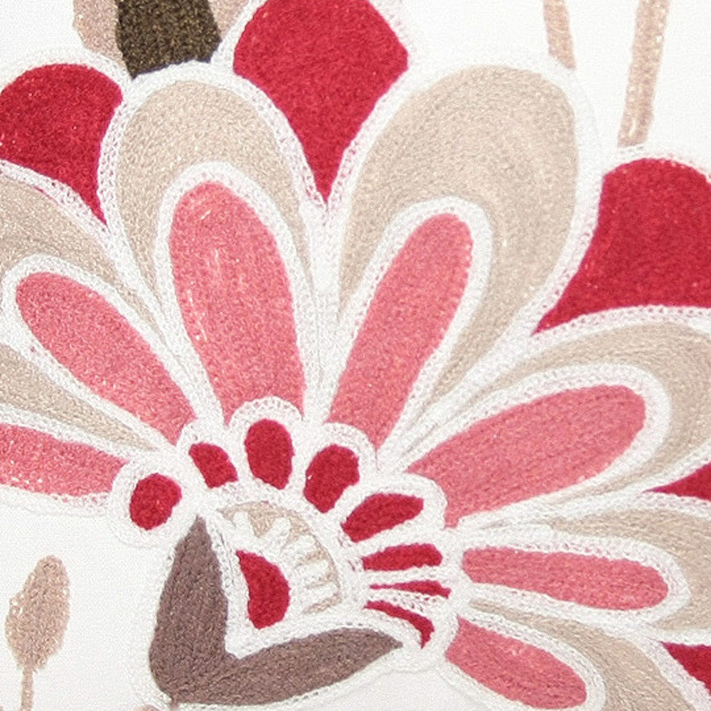 18"x18" Rose and White 100% Cotton Floral Zippered Pillow