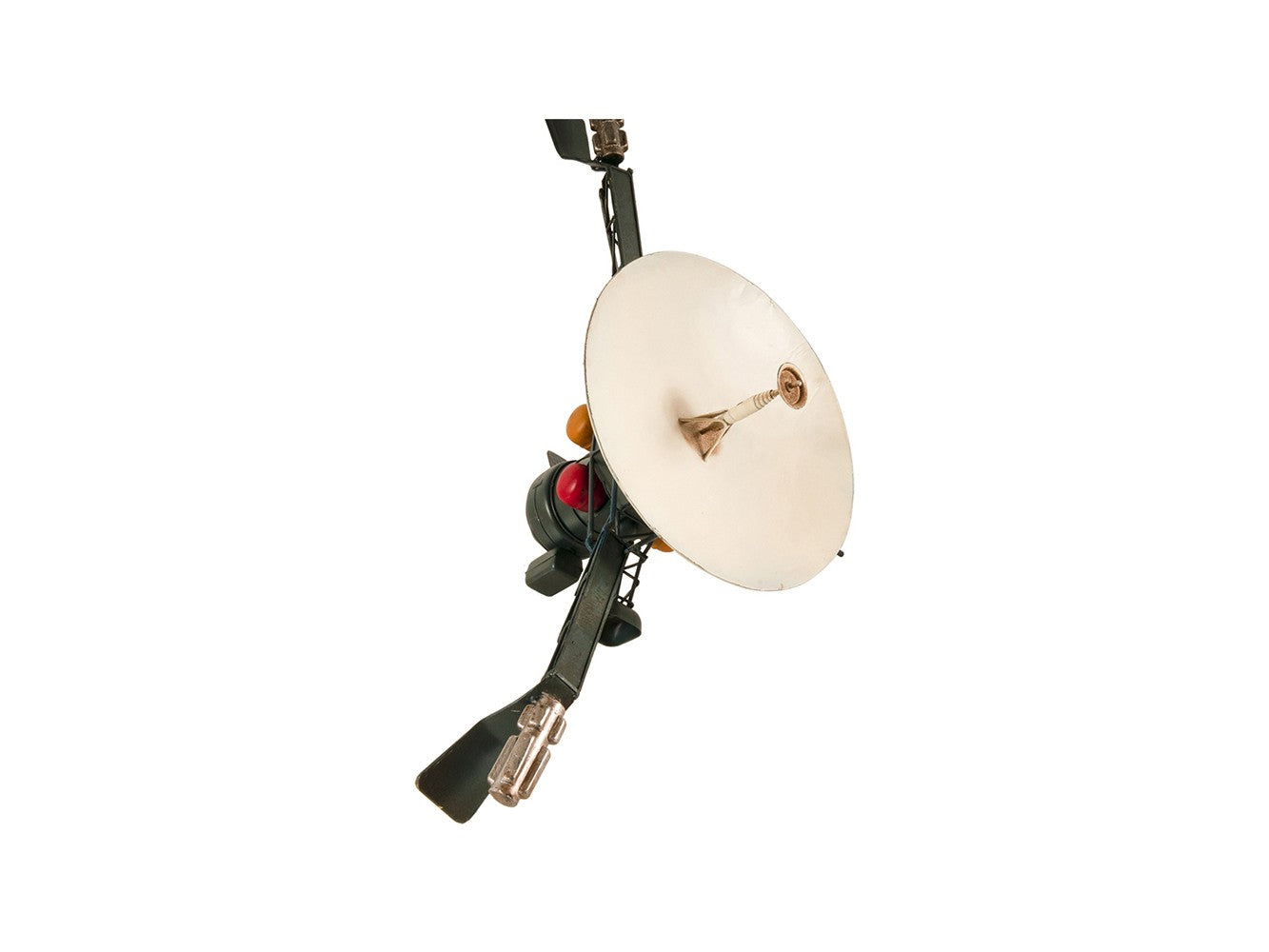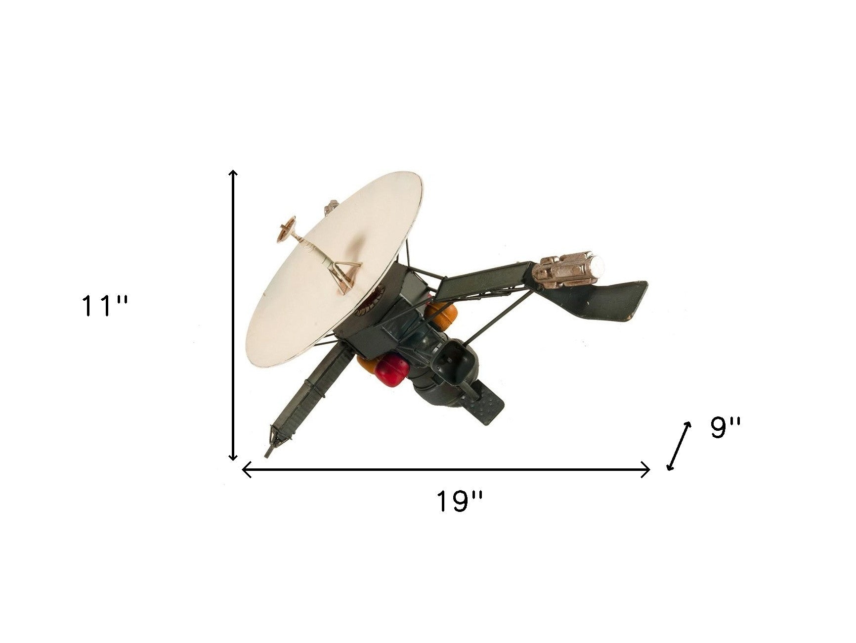 An authentic piece of space exploration history, the Galileo Spacecraft Sculpture is a unique handmade replica of the famous space probe that studied Jupiter and its moons. Handmade out of metal and authentically hand-painted, this replica includes amazing detailing like generators, probes, antenna, and thrusters. A must-have piece for space exploration enthusiasts and collectors. 11'' x 9'' x 19"