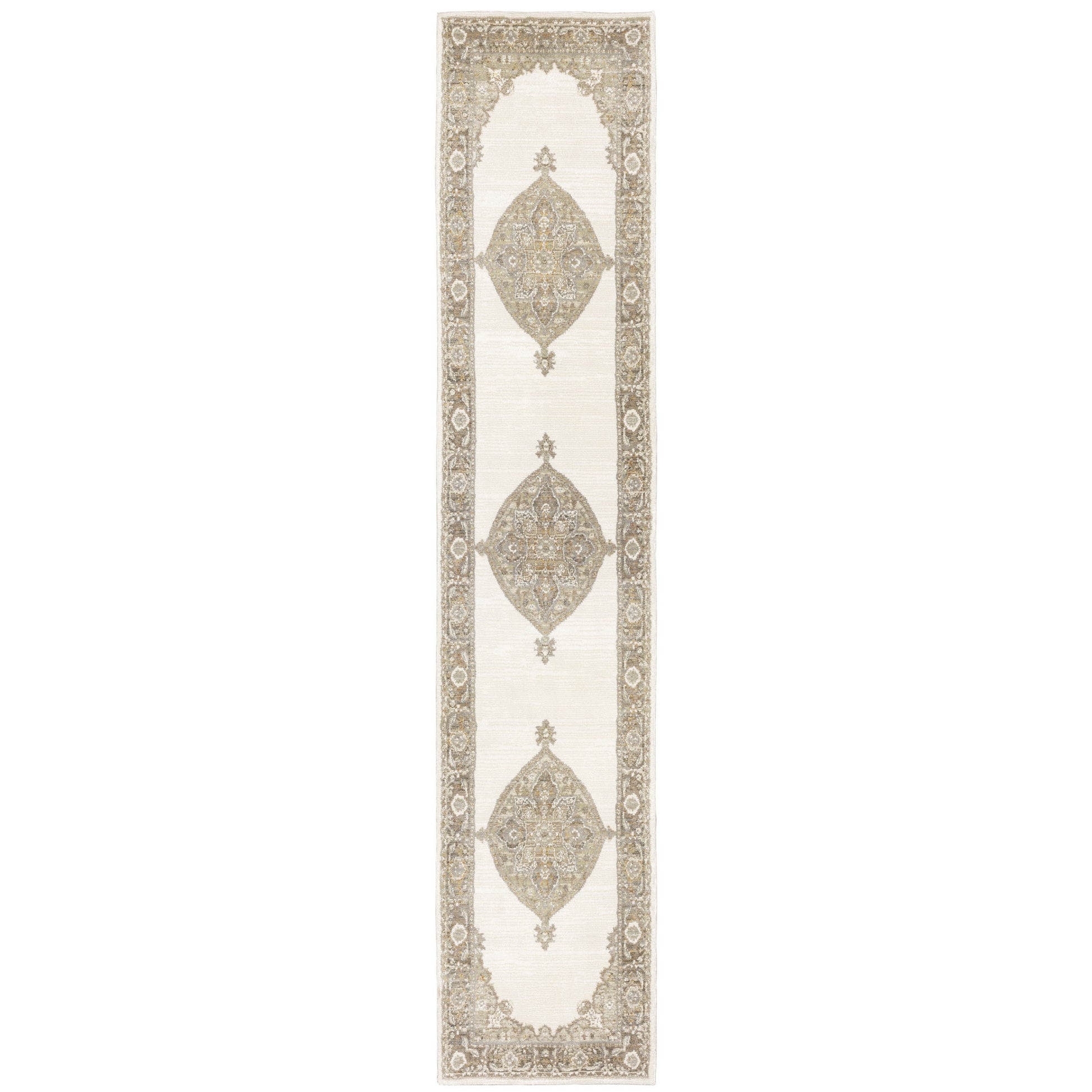 Add some artistry to your room with this 2' x 10' beige and ivory oriental power loom runner rug. This runner shaped rug features a oriental design in beige and ivory to give it visual interest. A classic shape marries with good looking design for your space Ideal for spaces with kids and pets, this rug is stain resistant to help repel stains and spilled liquids. Area Rugs help to give warmth and sense of home to your space. 0.55" H x 29.92" W x 143.7" D
