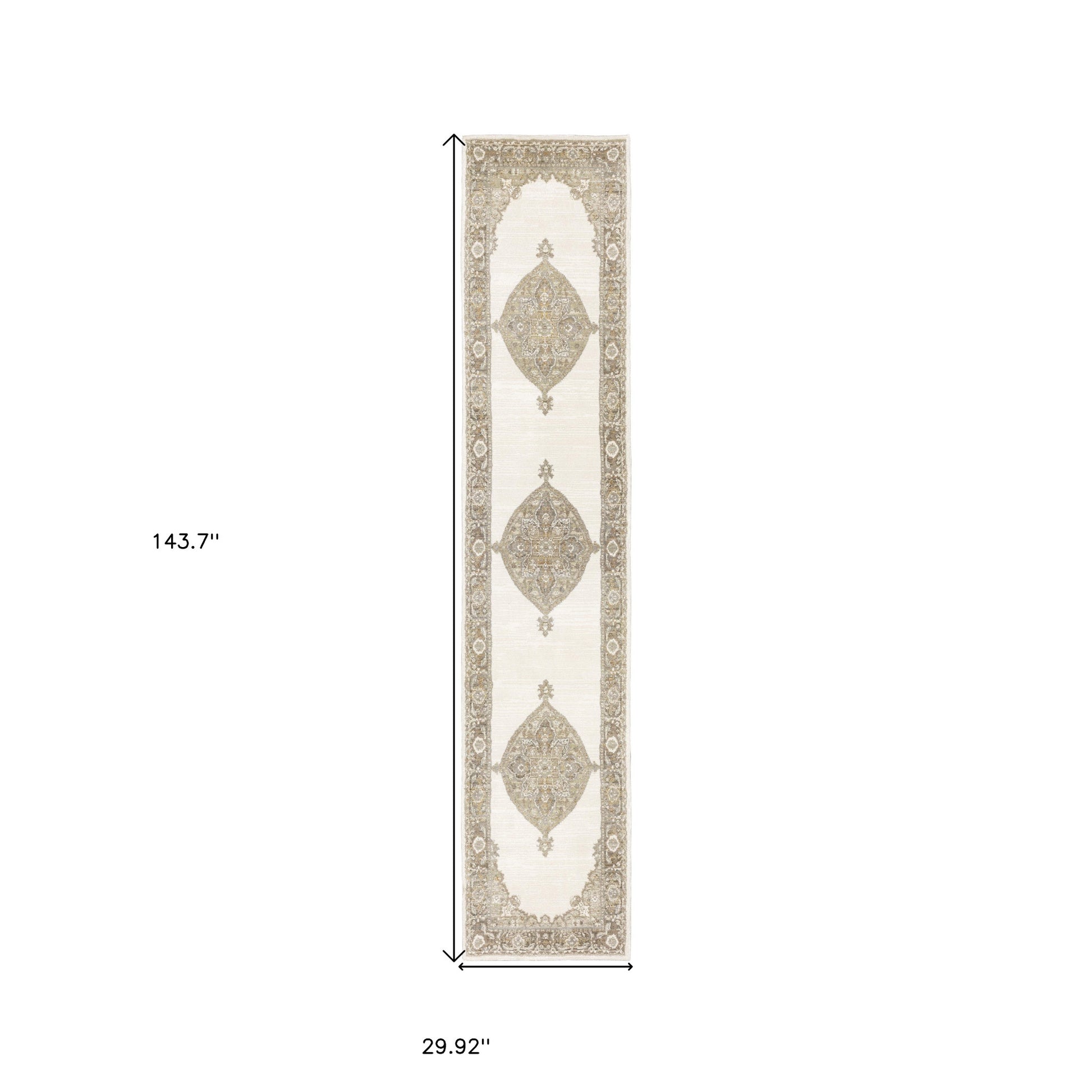 2' X 10' Beige And Ivory Oriental Power Loom Runner Rug