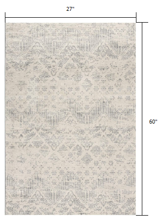 2’ X 10’ Ivory Distressed Ikat Pattern Runner Rug