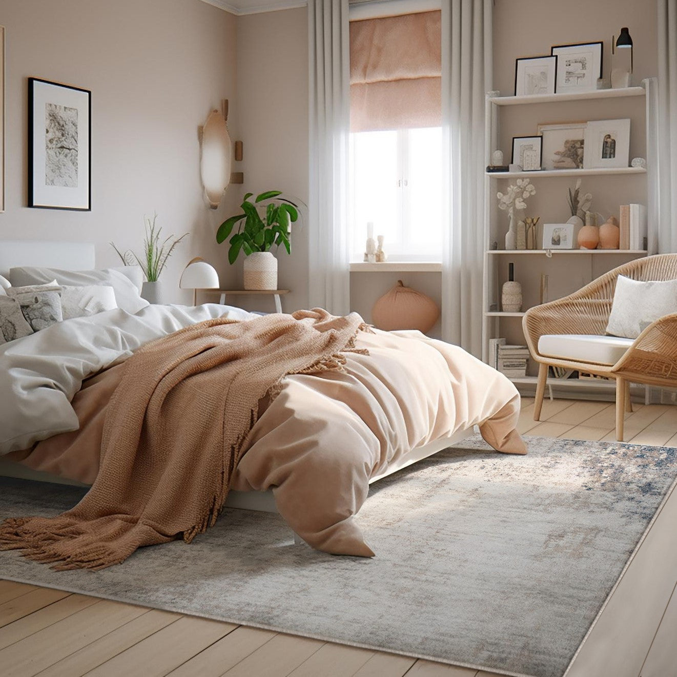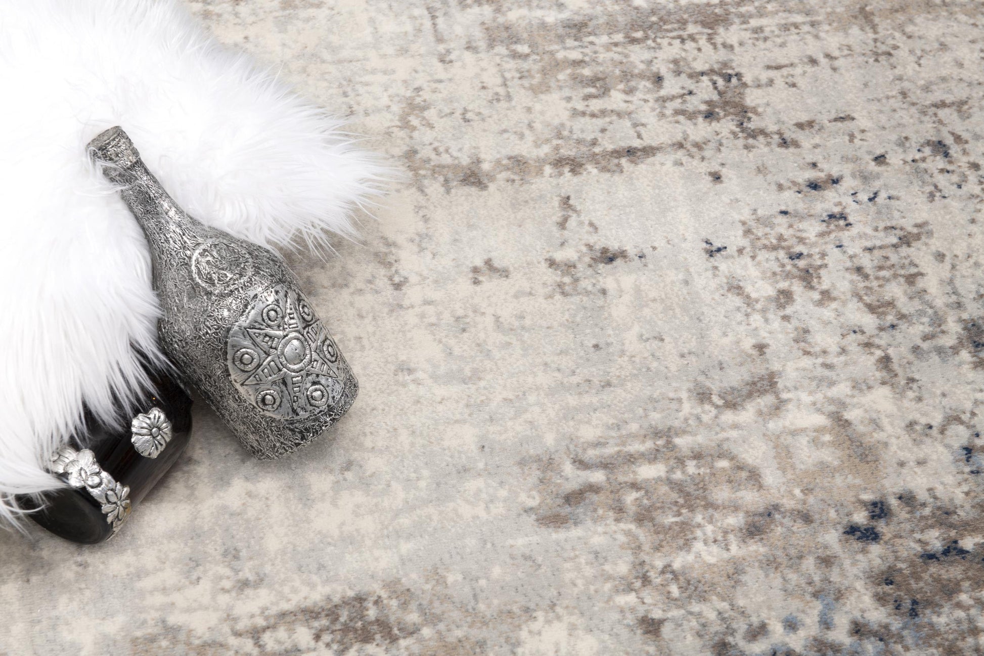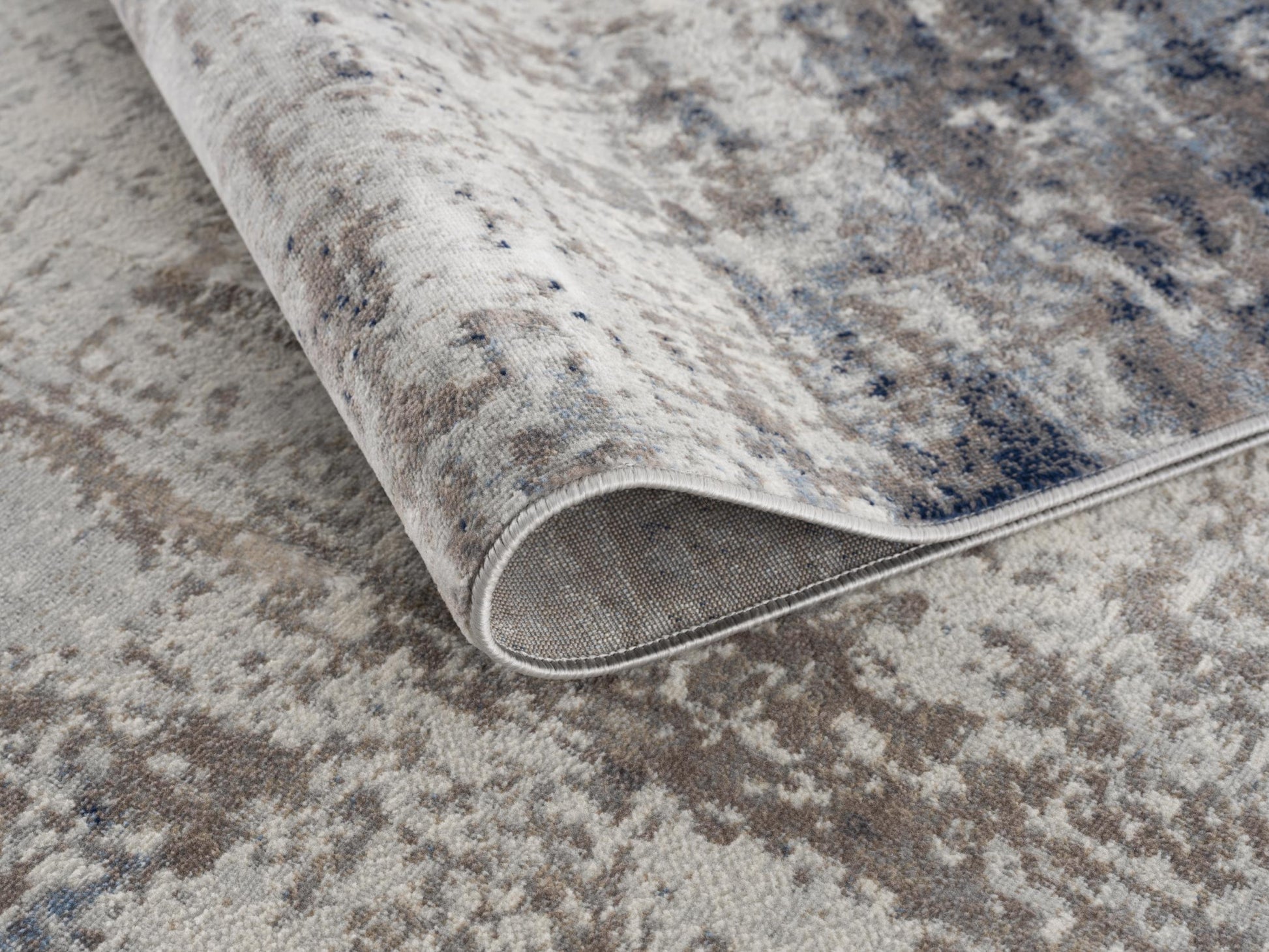The visually intriguing abstract patterns in a subtle color palette make this Navy Blue Distressed Striations Scatter Rug a perfect pick to add an artistic appeal to your living space. Giving off a weathered impression with its skillful use of navy blue and beige hues on an ivory base to accentuate the aesthetics of antique pieces. Made in Turkey with 100% inherently durable and stain-resistant polypropylene fibers to stand up the elements of high traffic indoor areas while ensuring its strength and sheen for years to come. The high and dense pile construction not only adds to its surface interest but also offers a soft and cozy layer under the feet to experience utmost comfort as you step on this piece. The neutral hues of this scatter rug make it not only a cornerstone for contemporary styling but also a versatile accent to suit any interior theme. 39” x 27” x 0.4”